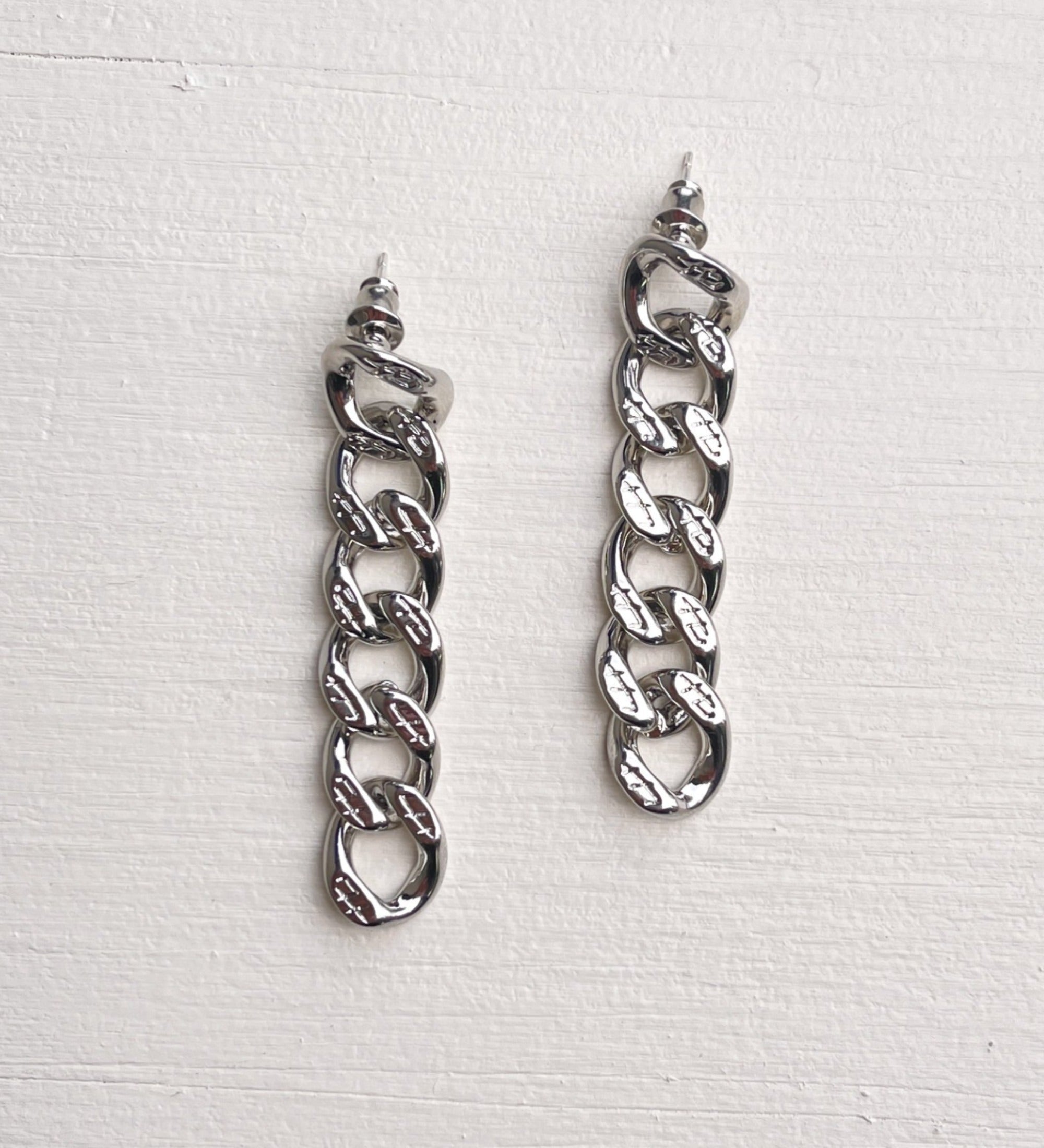 Silver Plated Textured Curb Chain Link Earrings