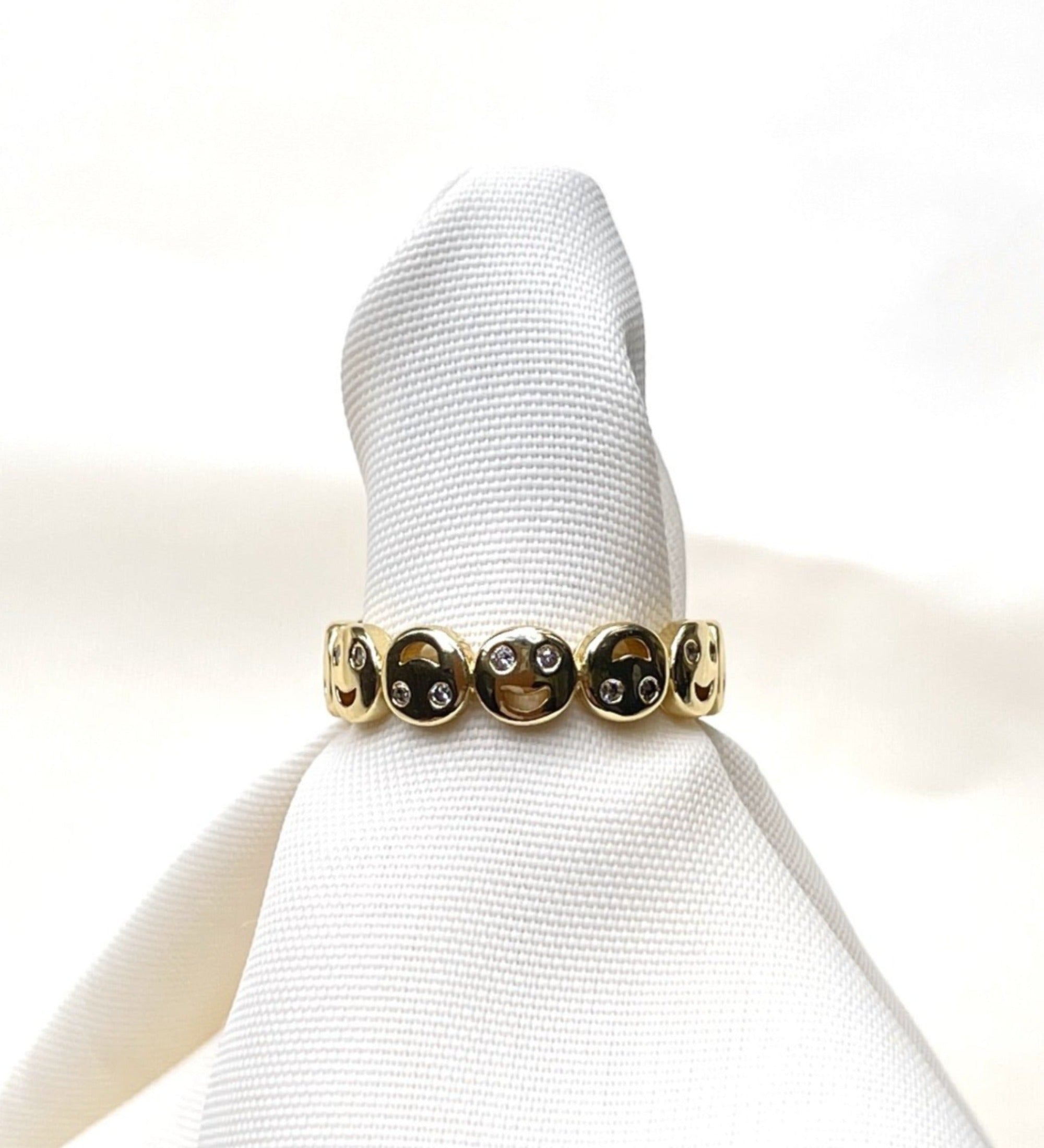 Gold Plated Mini Happy Face Ring with Crystals