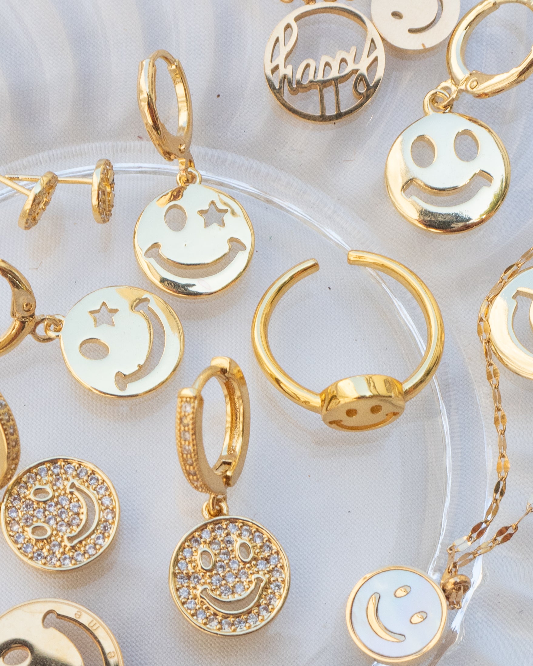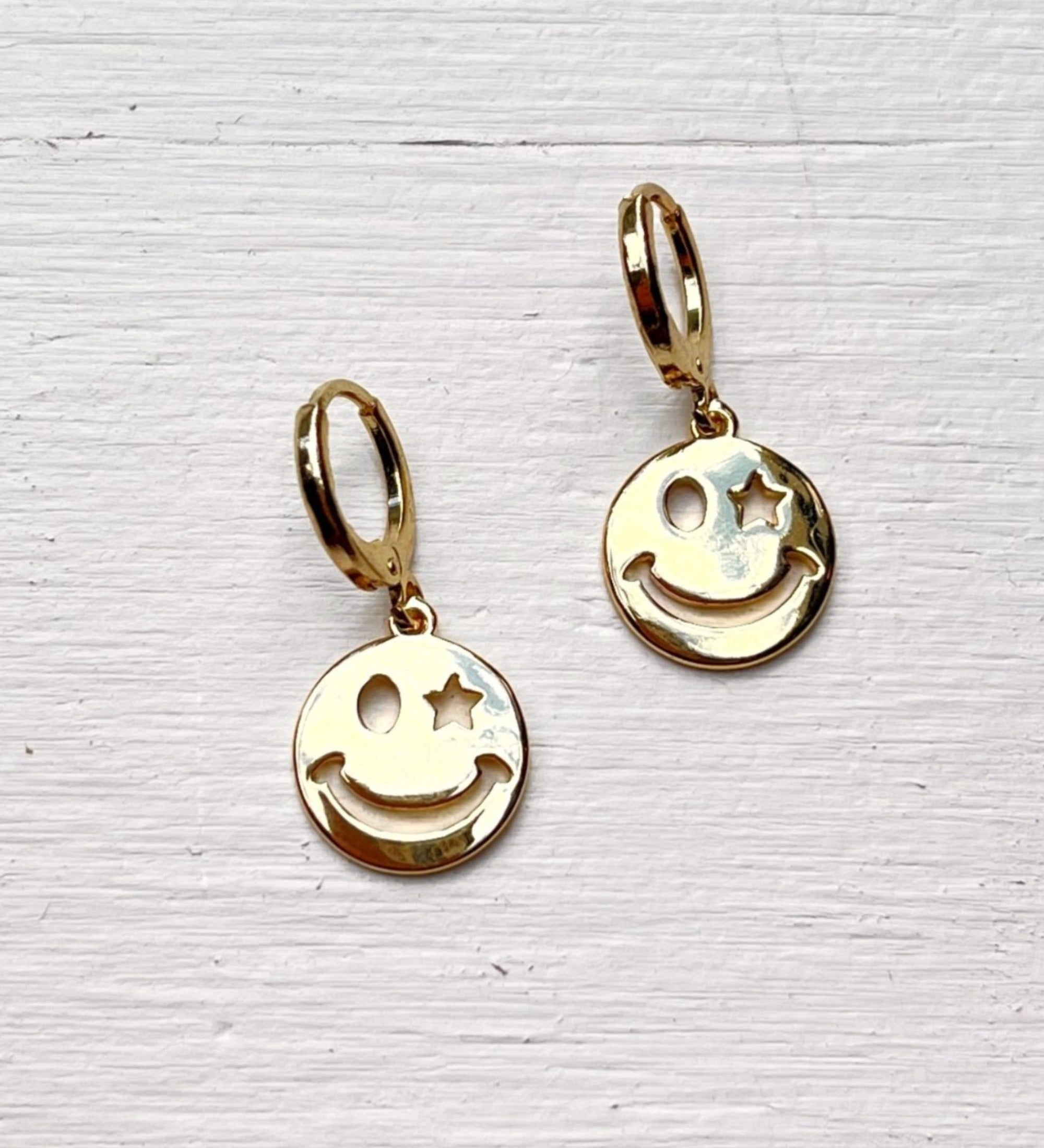 Gold Plated Starry Eyed Smile Face Huggie Hoop Earrings