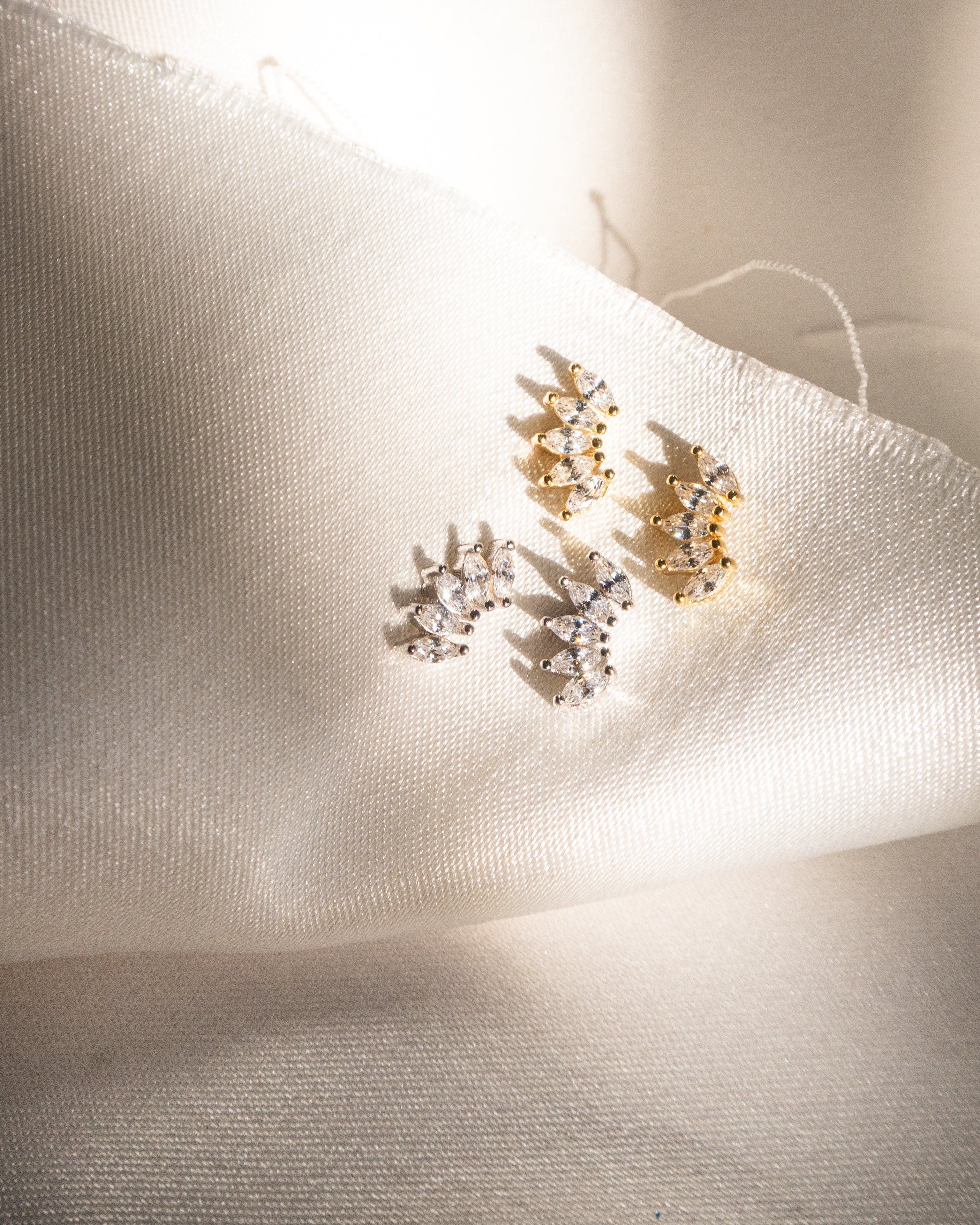 Gold Plated Sterling Silver Marquise Crystal Stud Earrings