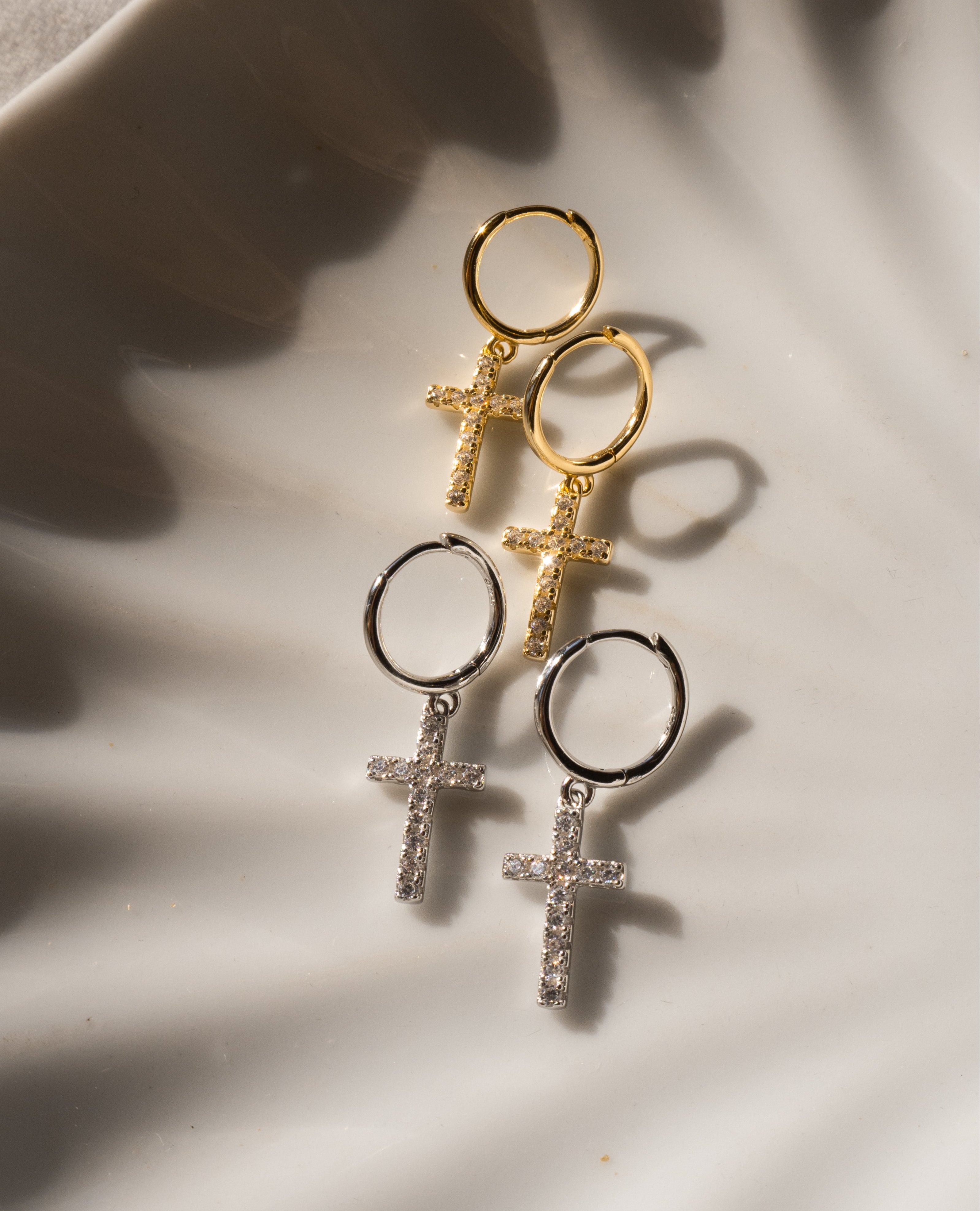 Pave Cross Huggies | Silver