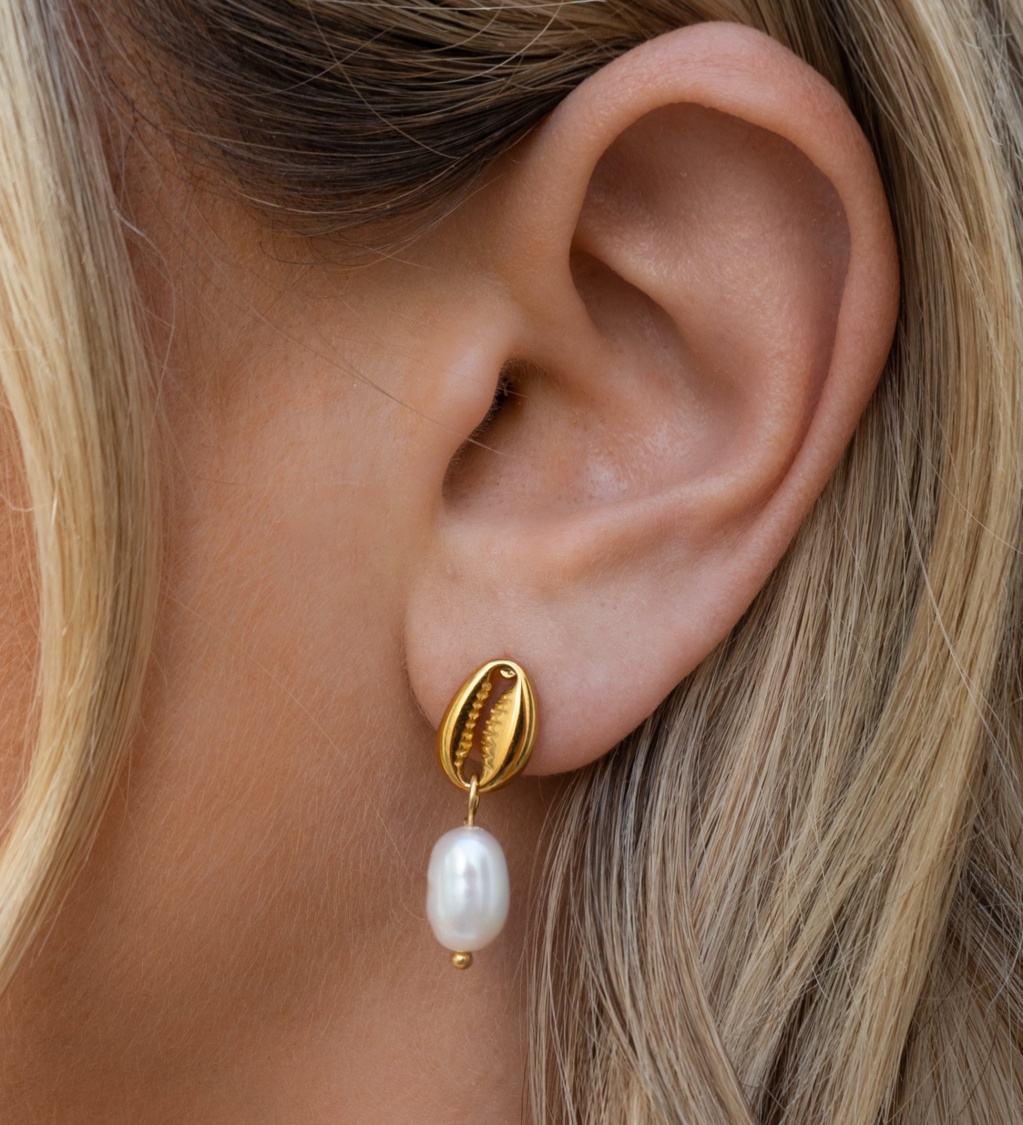 These earrings are made with a real freshwater pearl, therefore each pearl is unique and no two earrings are alike.