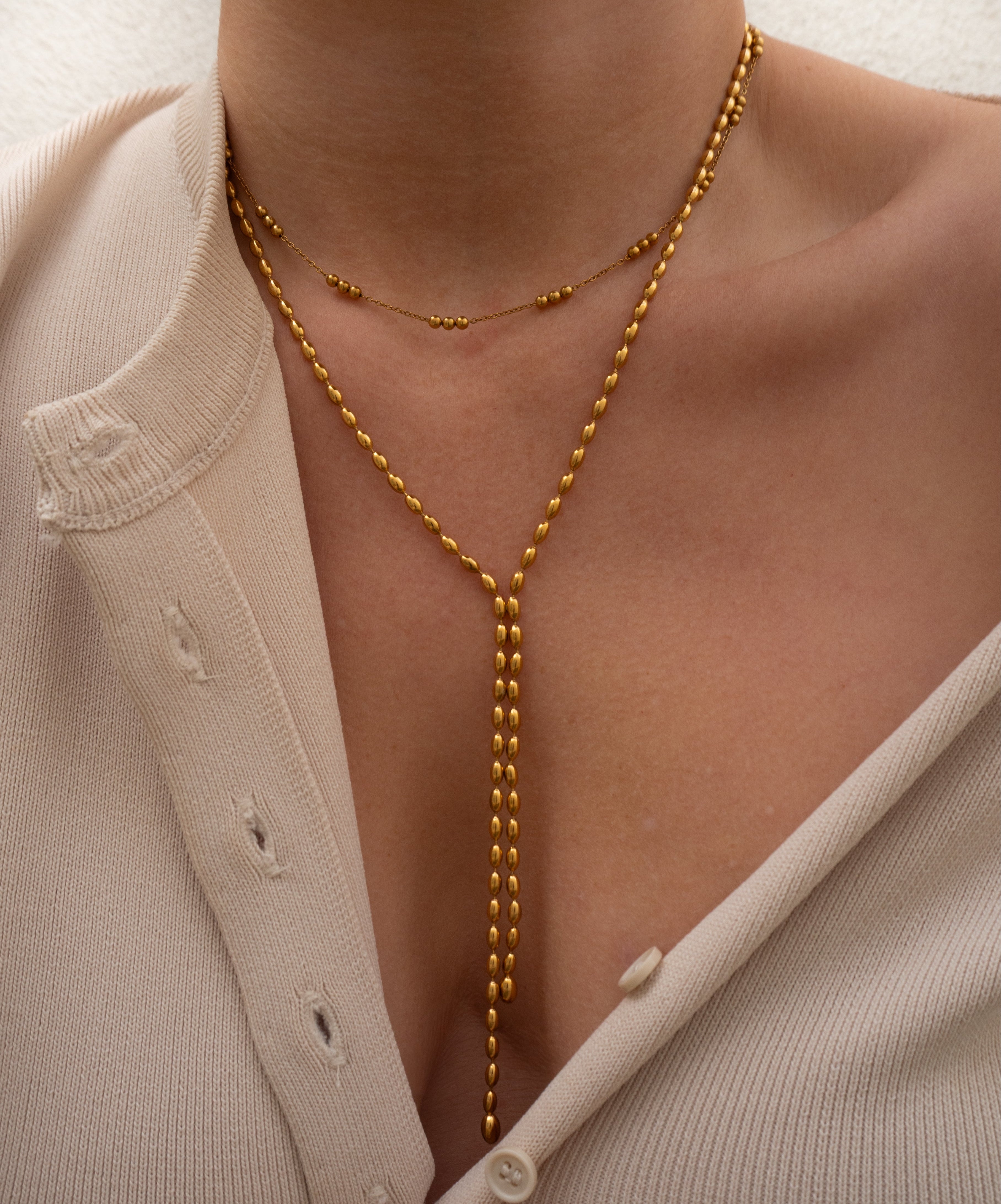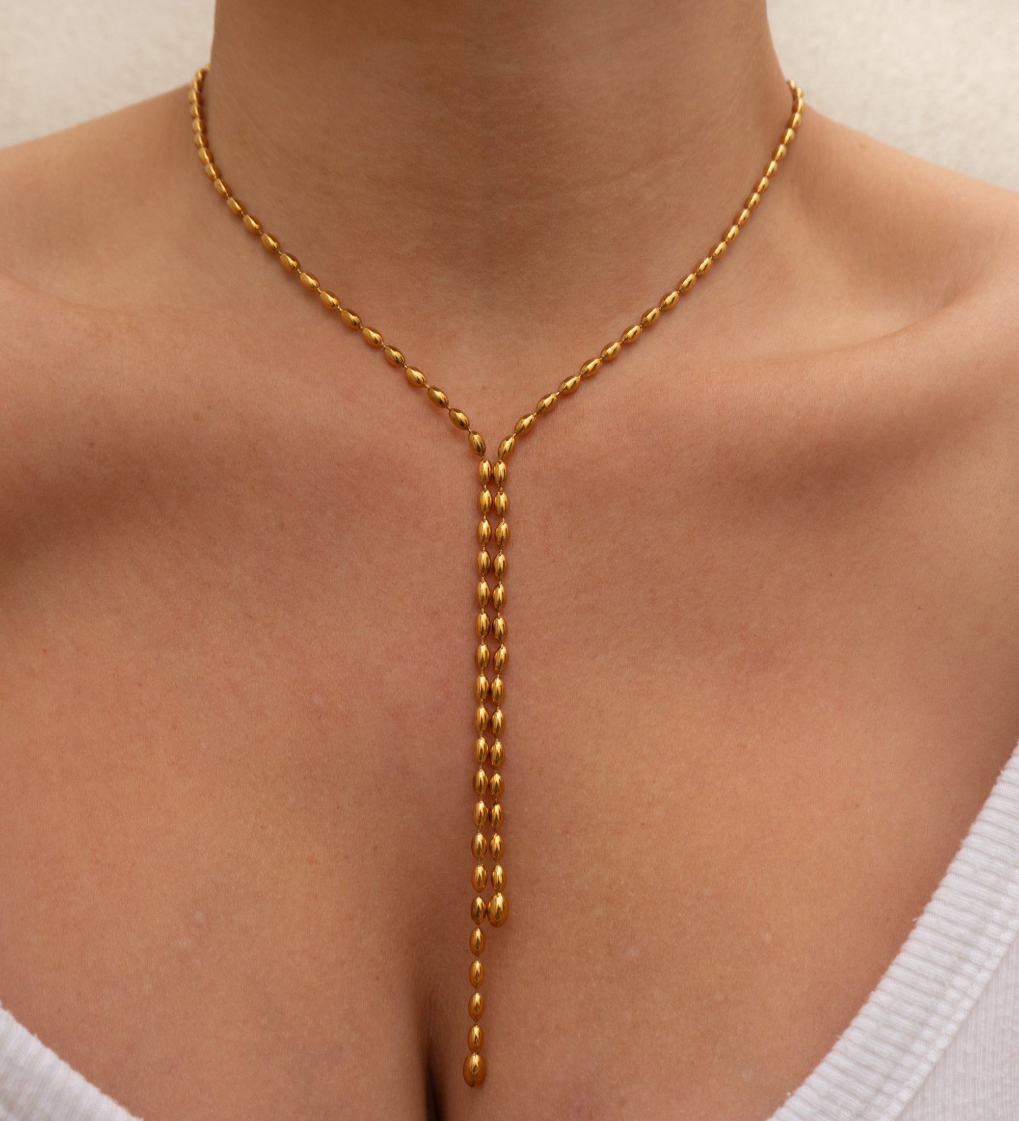 Gold Oval Ball Chain Lariat Necklace