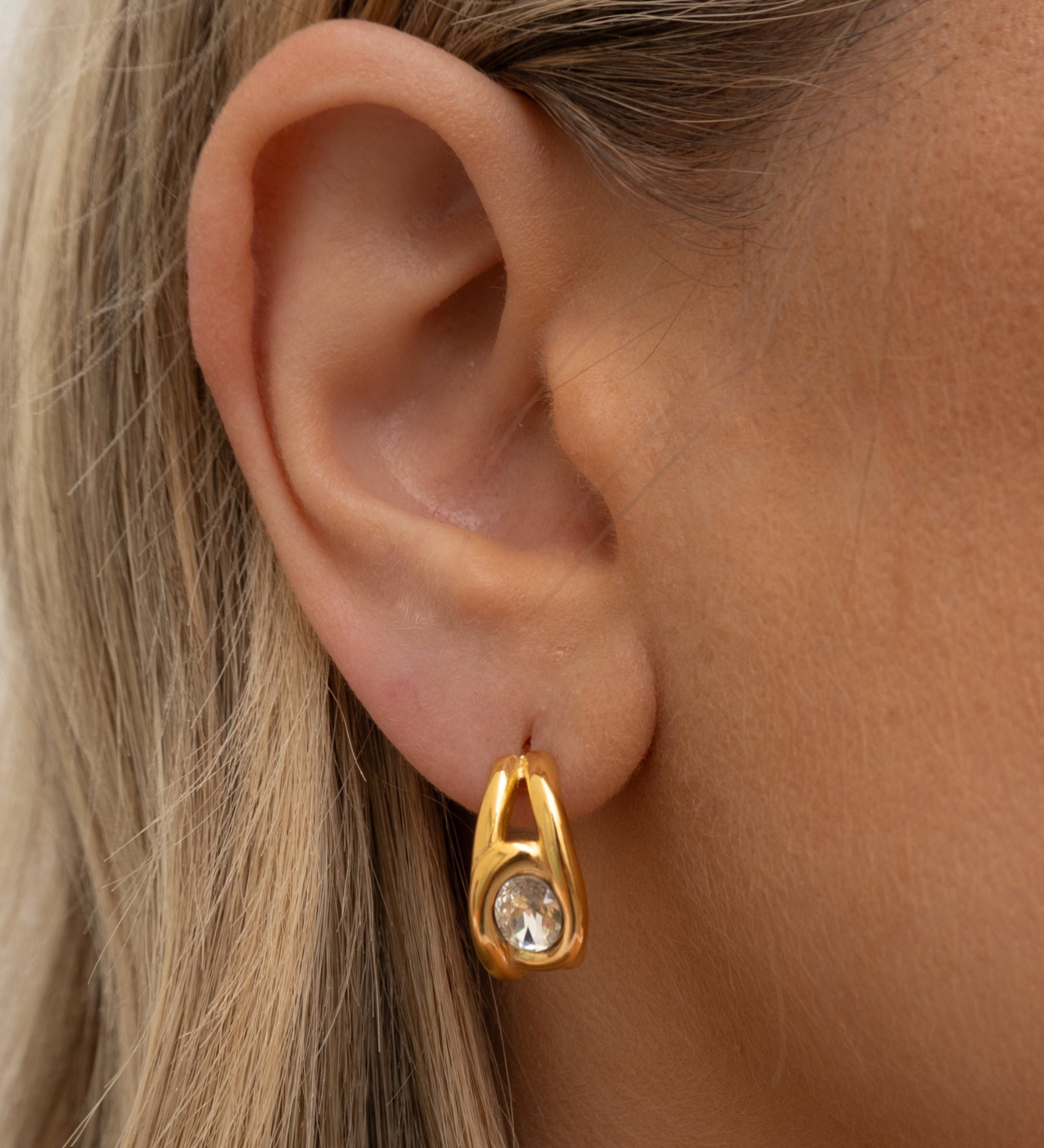 Gold and Bezel Crystal Half Hoop Earrings