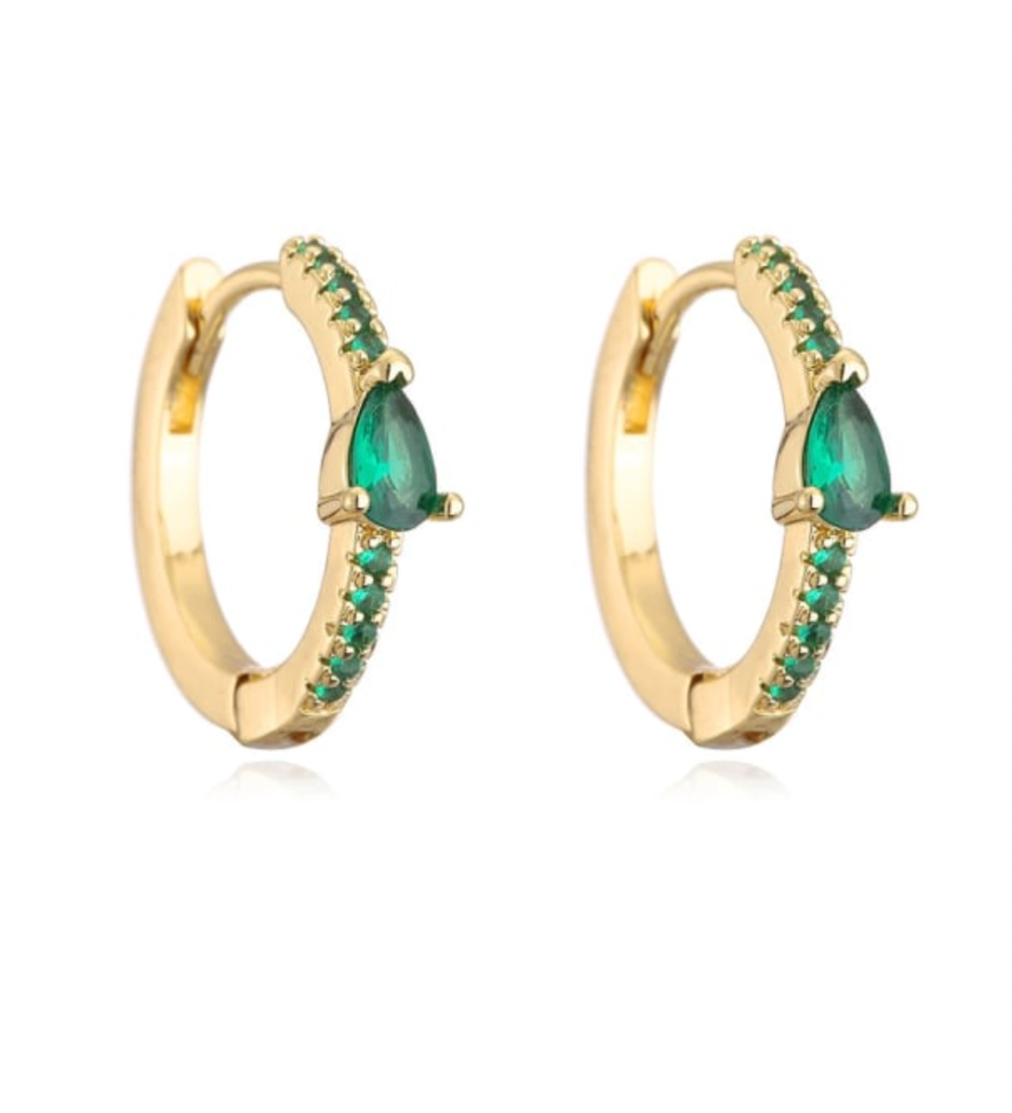 Gold Plated Huggie Hoops with Bezel Gemstone