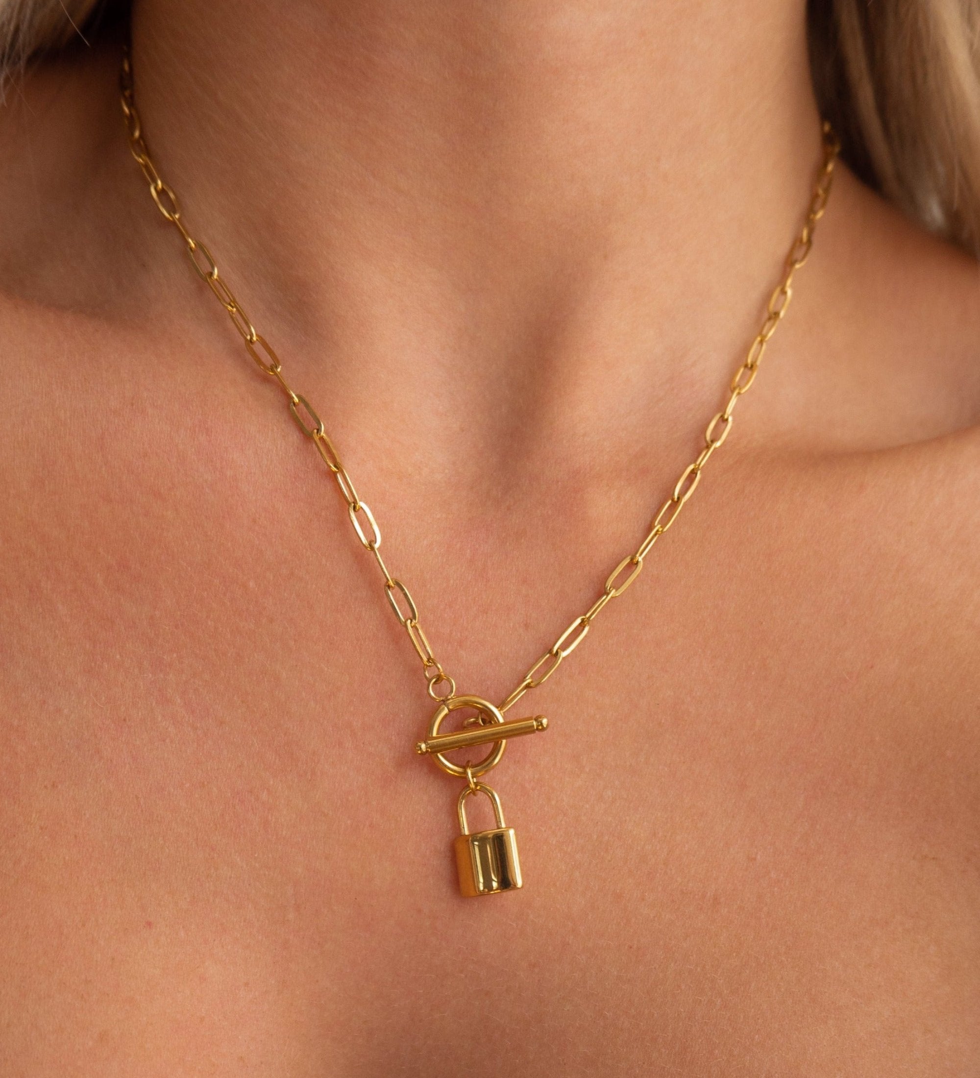 Gold Locket and Toggle Clasp Chain Necklace