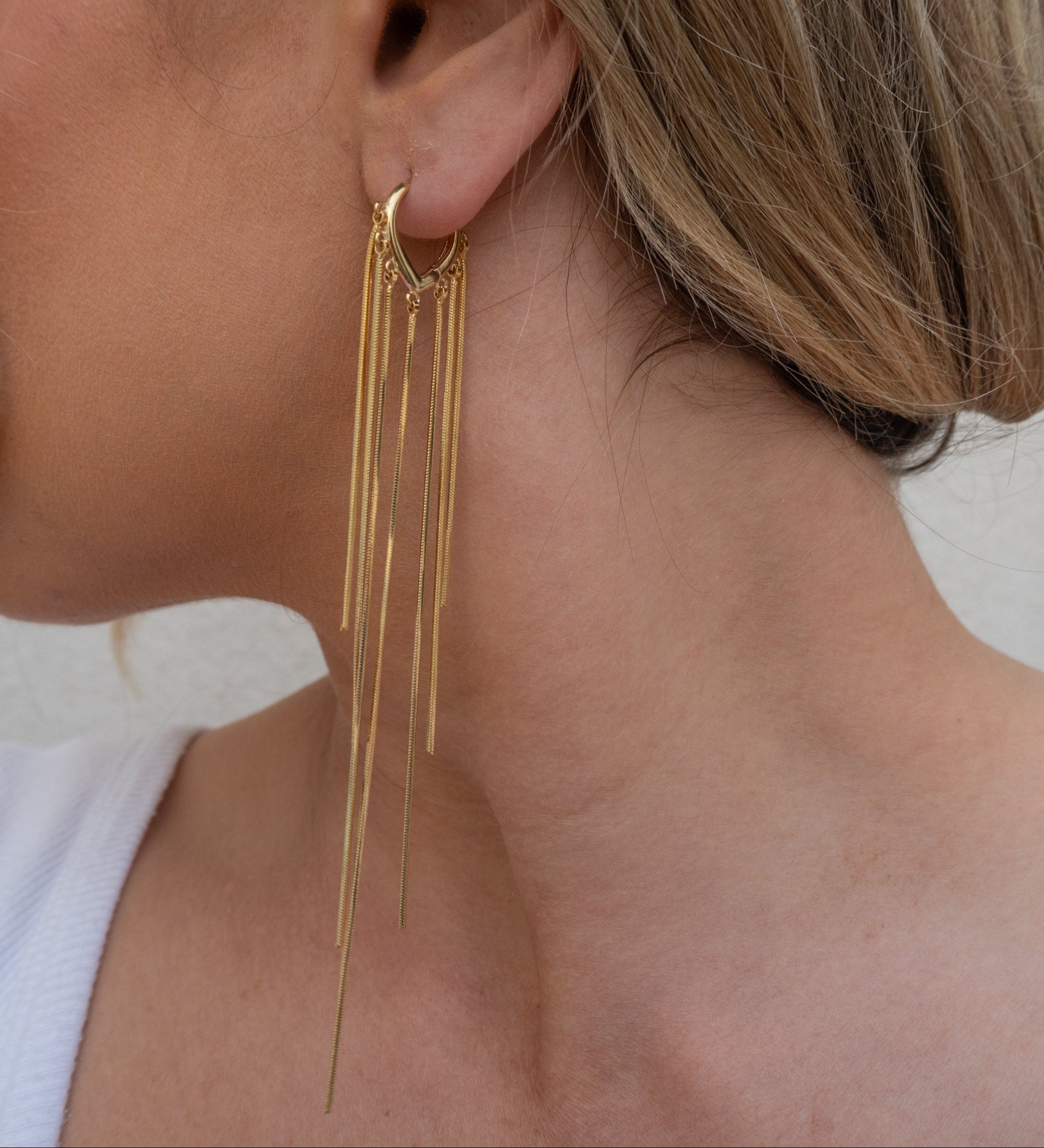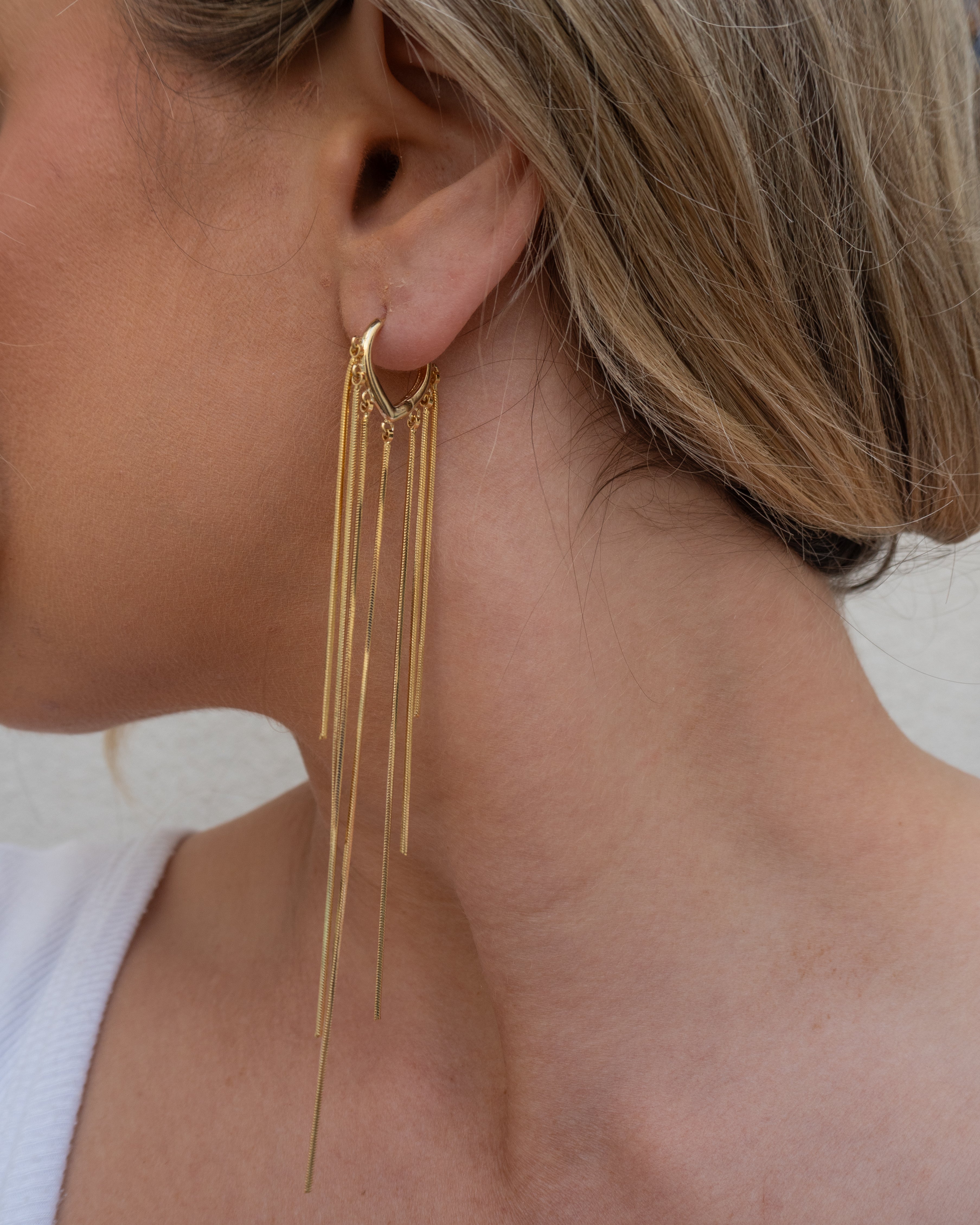 Gold Dainty Snake Chain Tassel Dangle Earrings