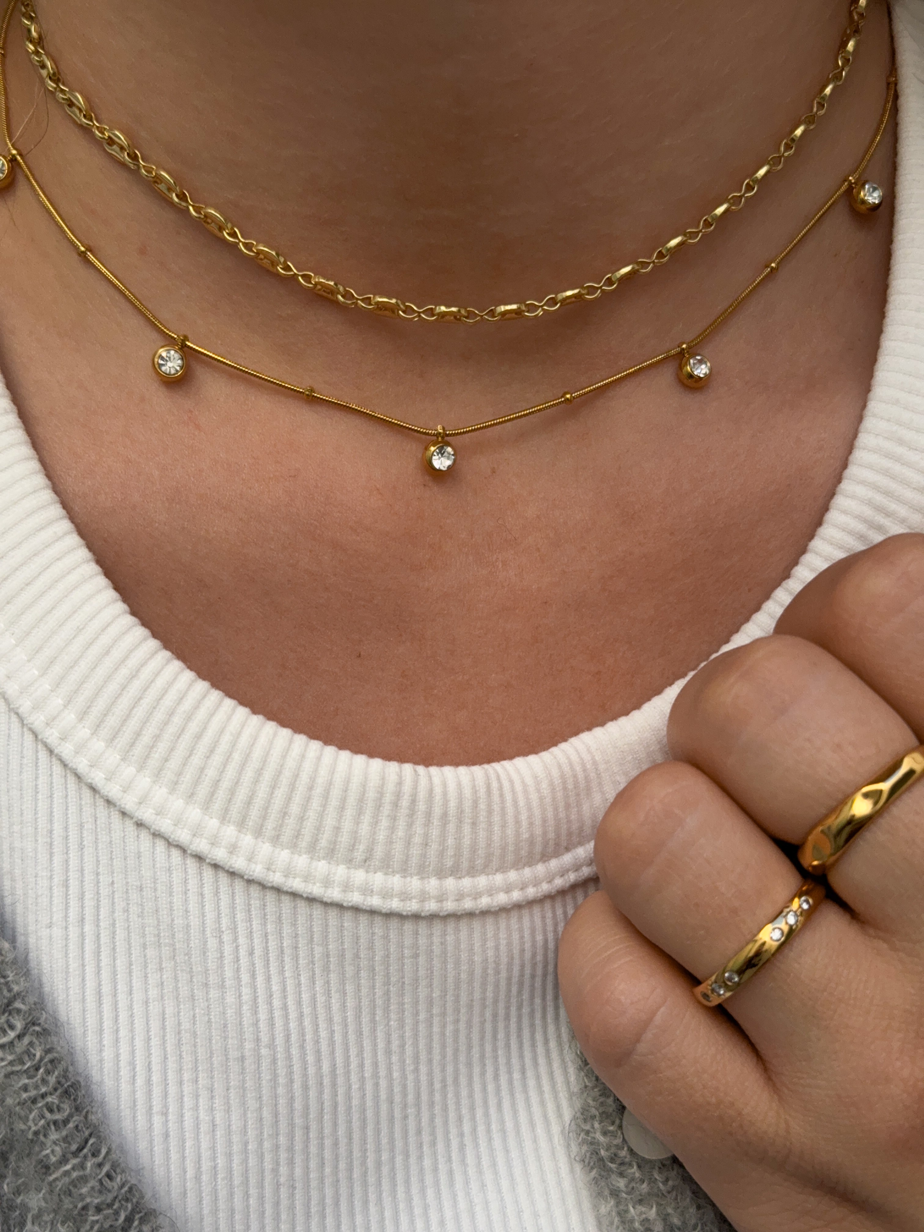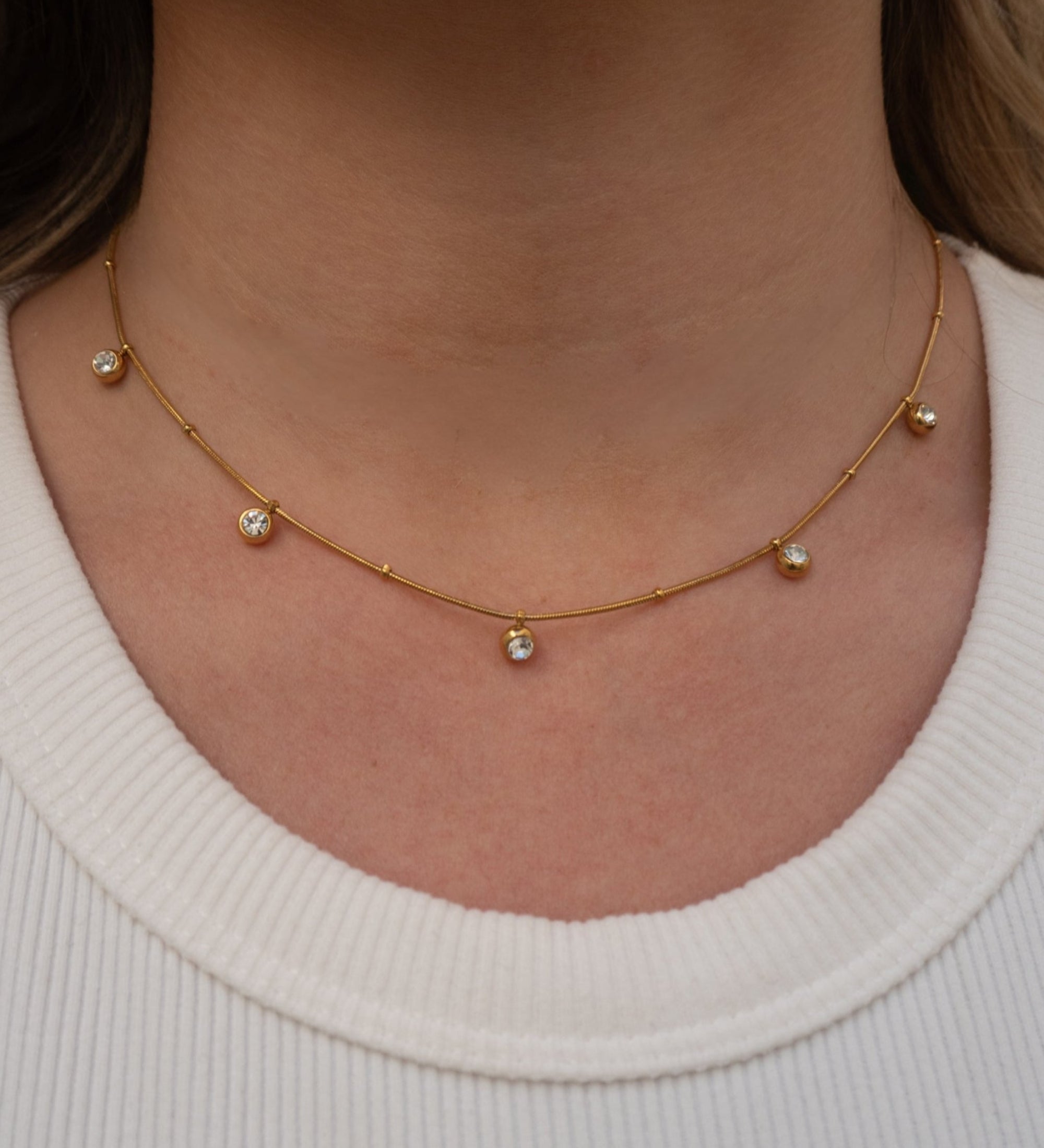 Gold Snake Satellite Chain Necklace with Bezel Crystals