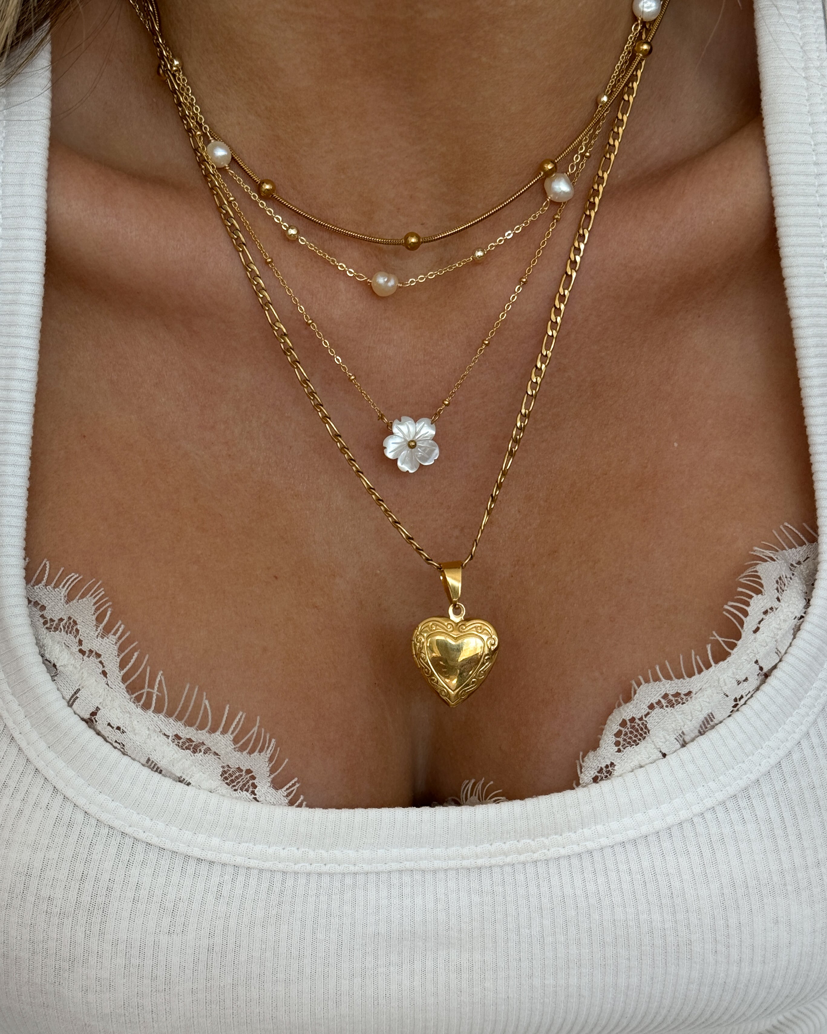Gold Beaded Satellite Chain Necklace With Mother of Pearl Flower