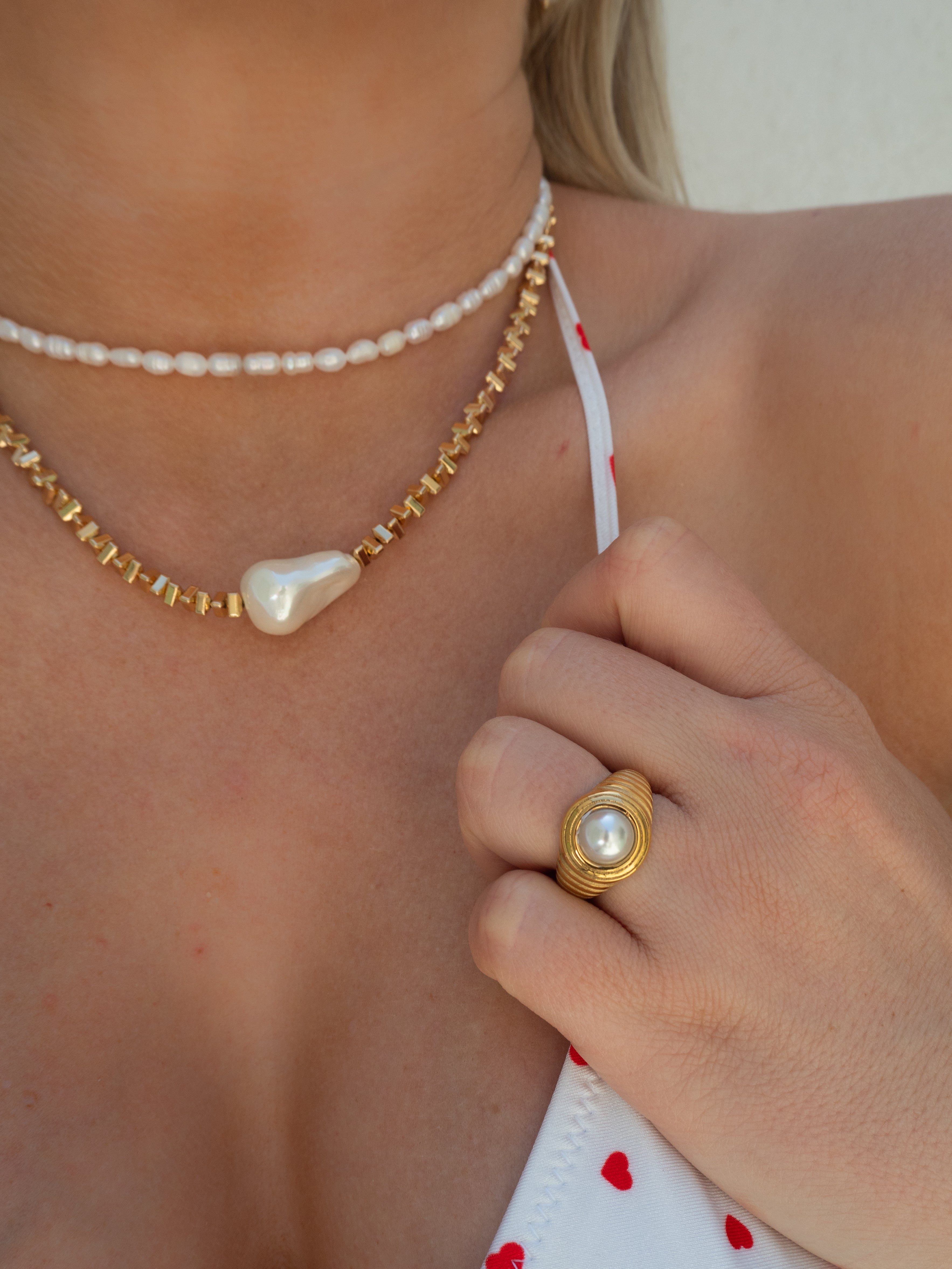 This necklace is made with a real freshwater pearl, therefore each pearl is unique and no two necklaces are alike.