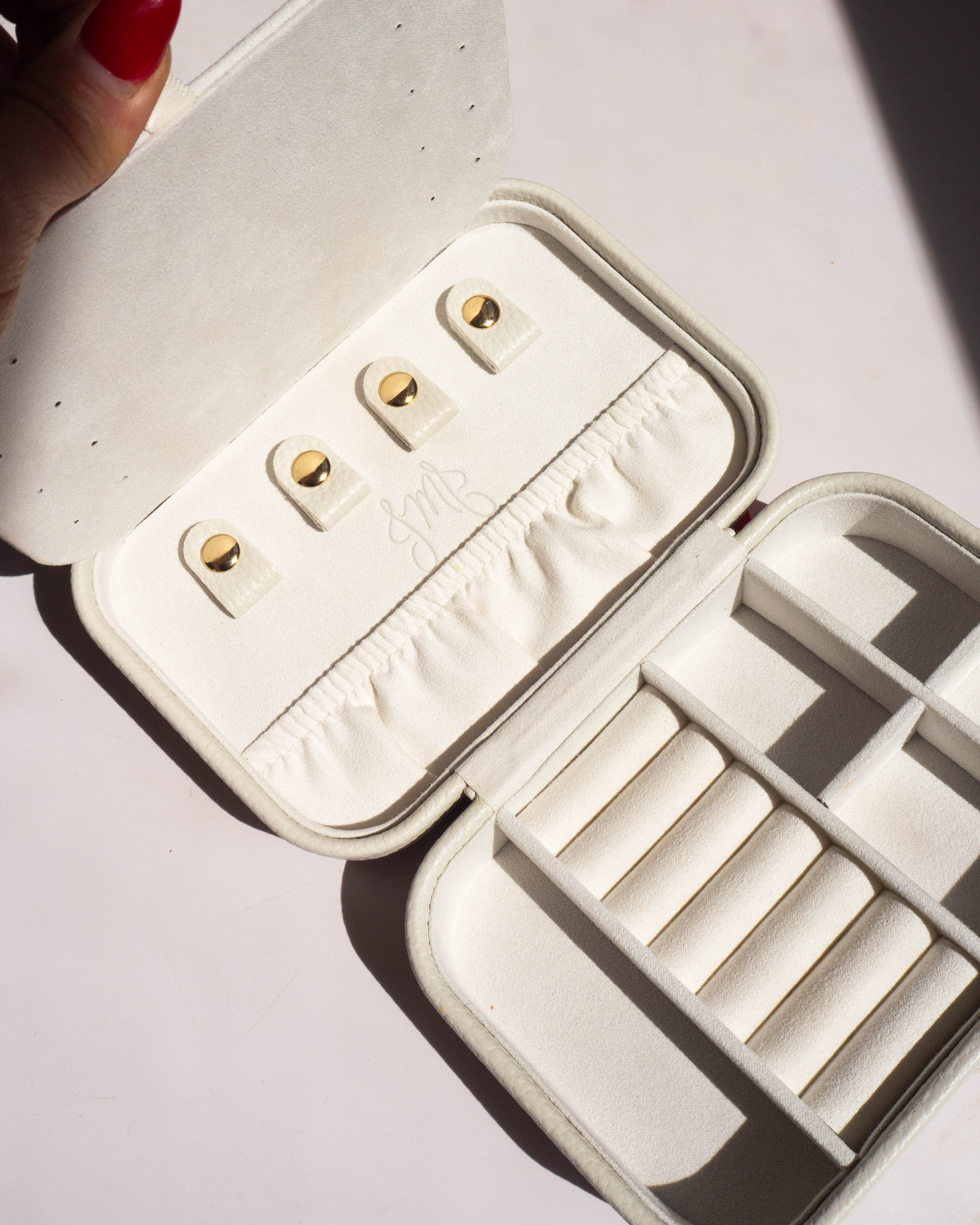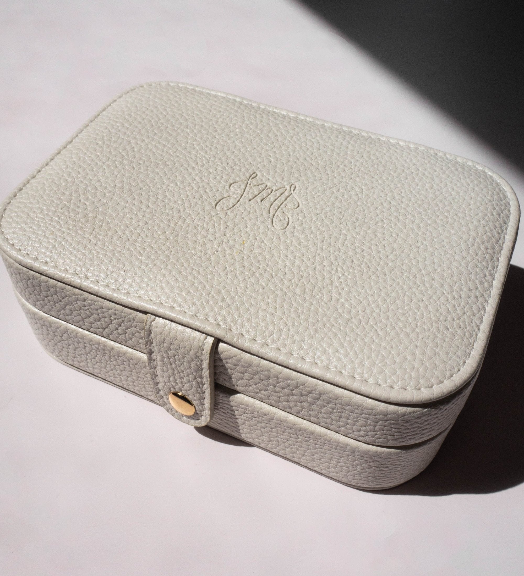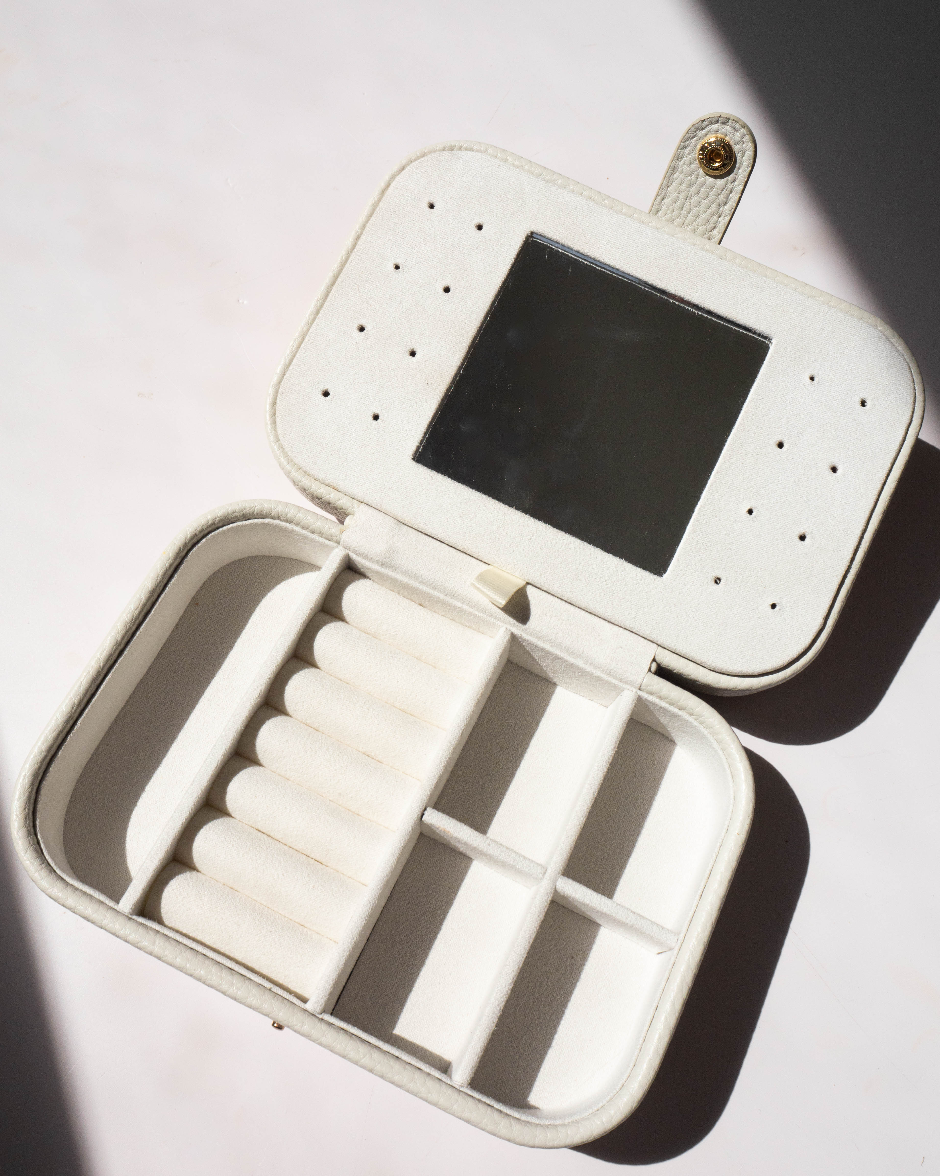 Large White Vegan Pebbled Leather Travel Jewelry Box