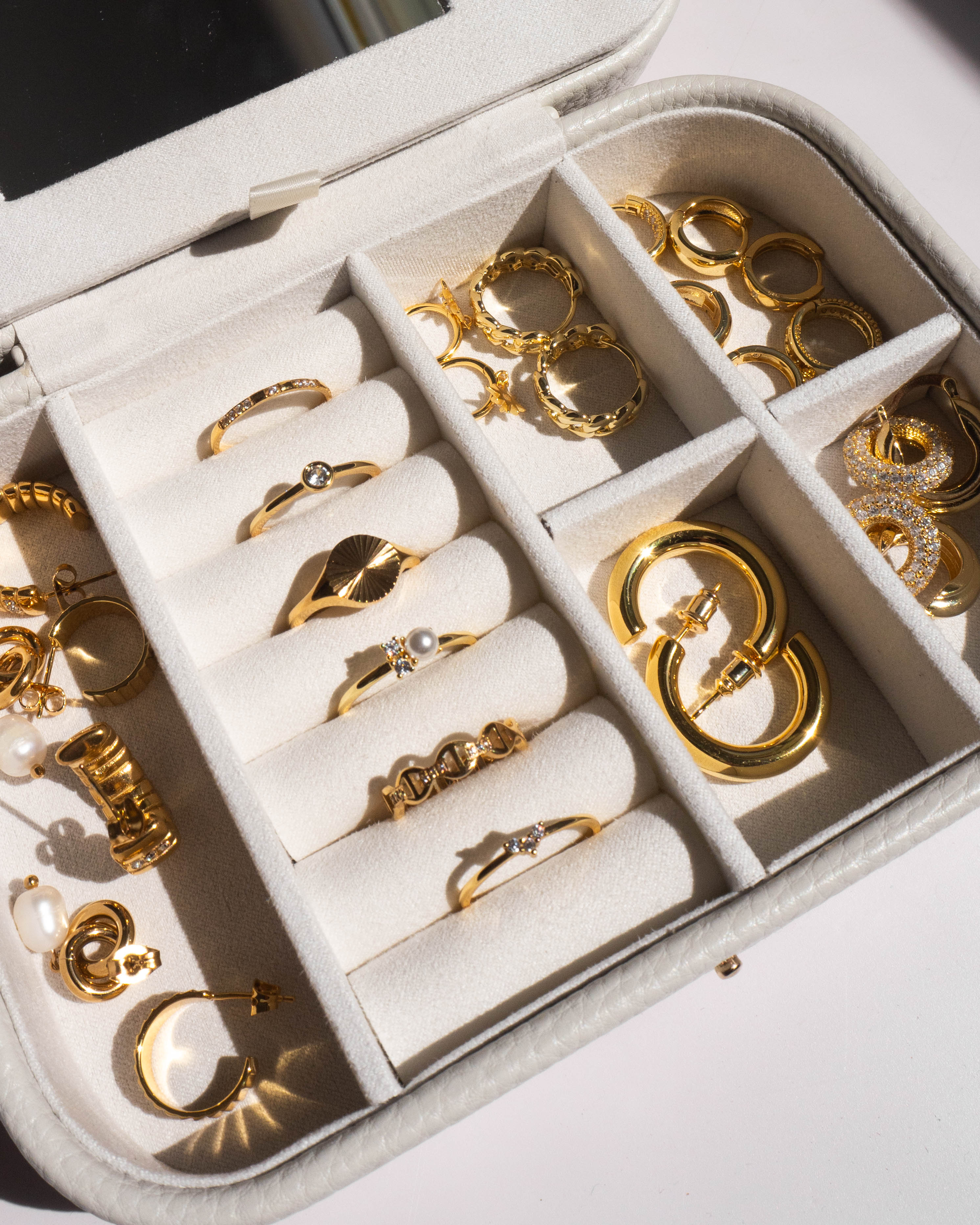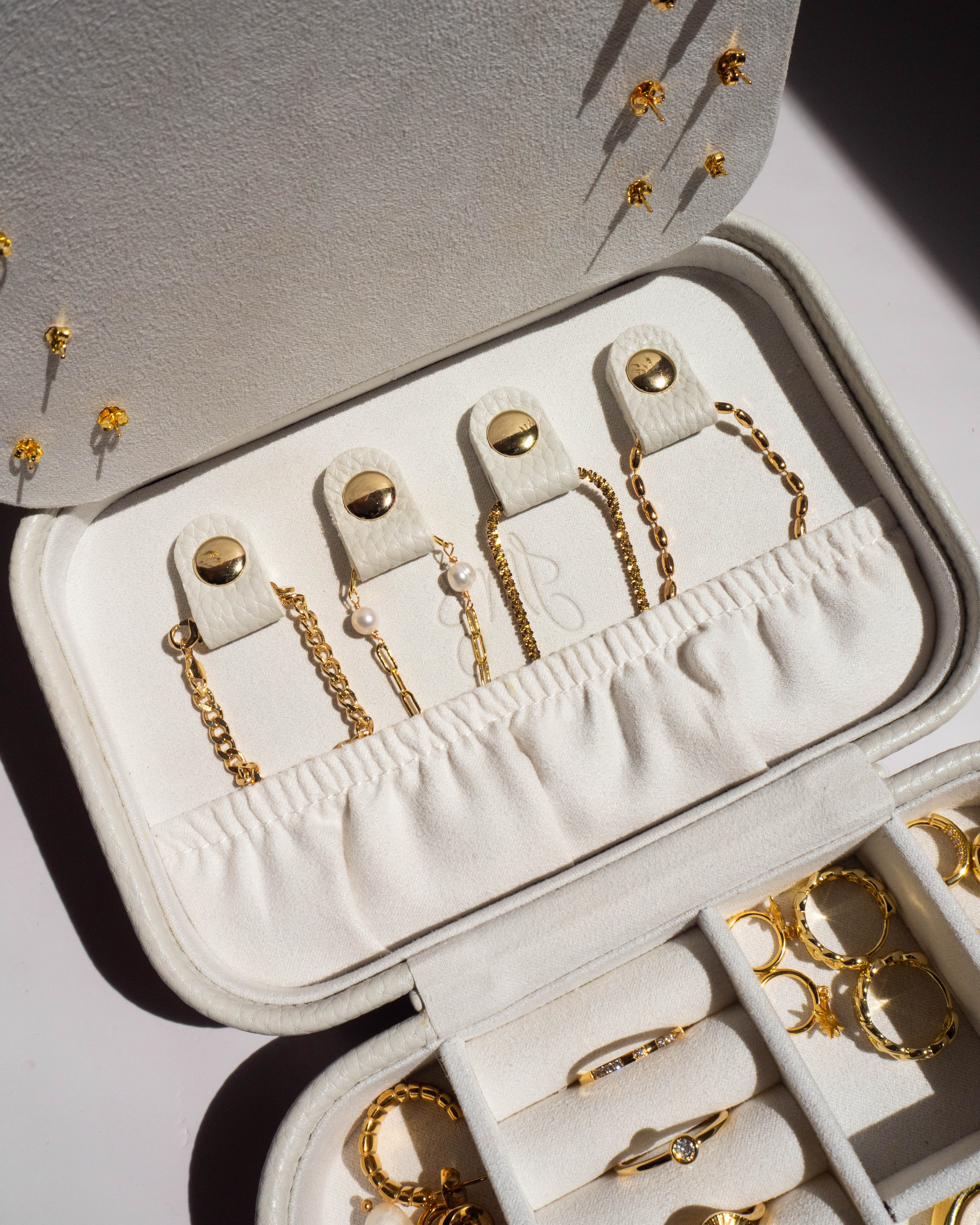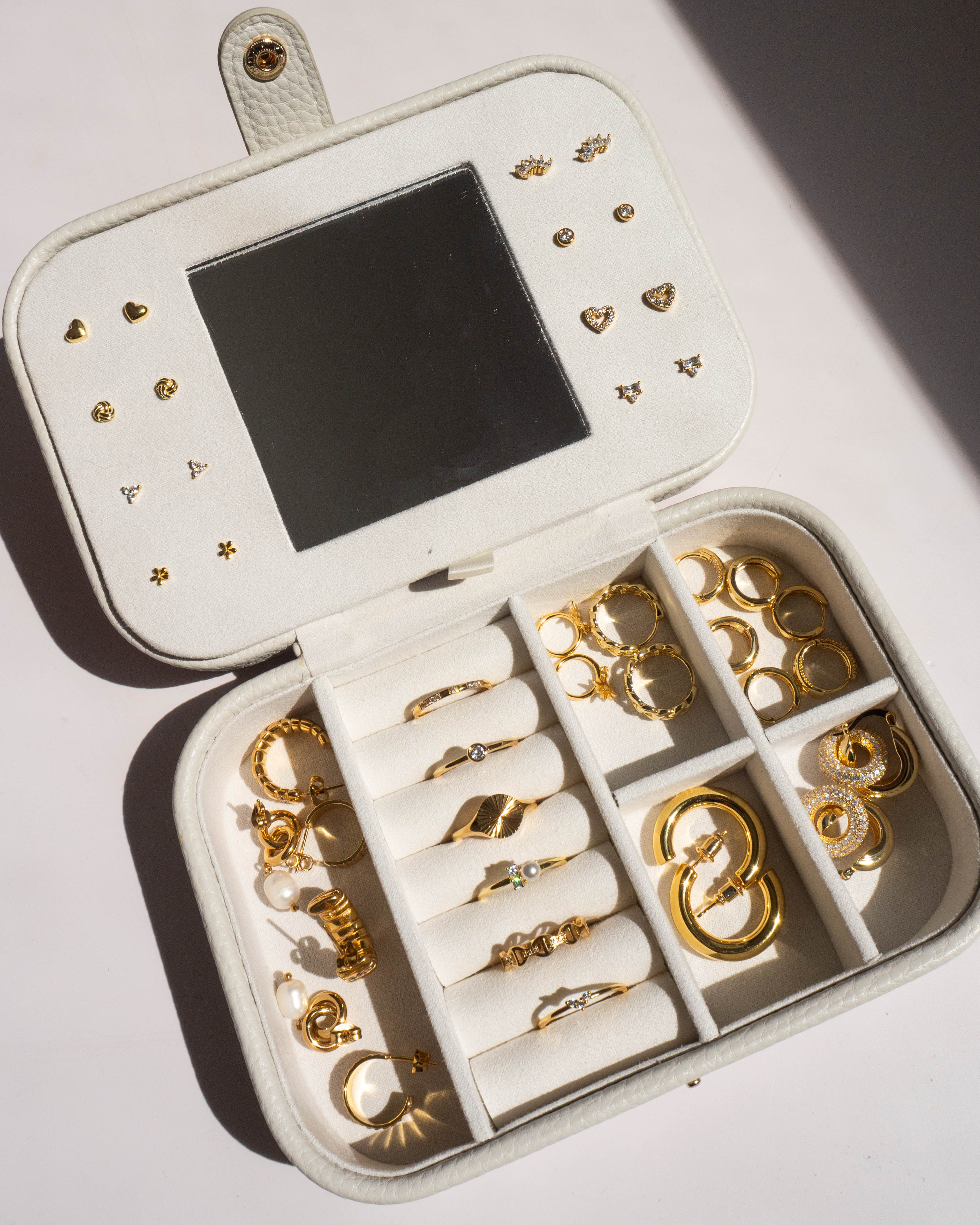 Large White Vegan Pebbled Leather Travel Jewelry Box