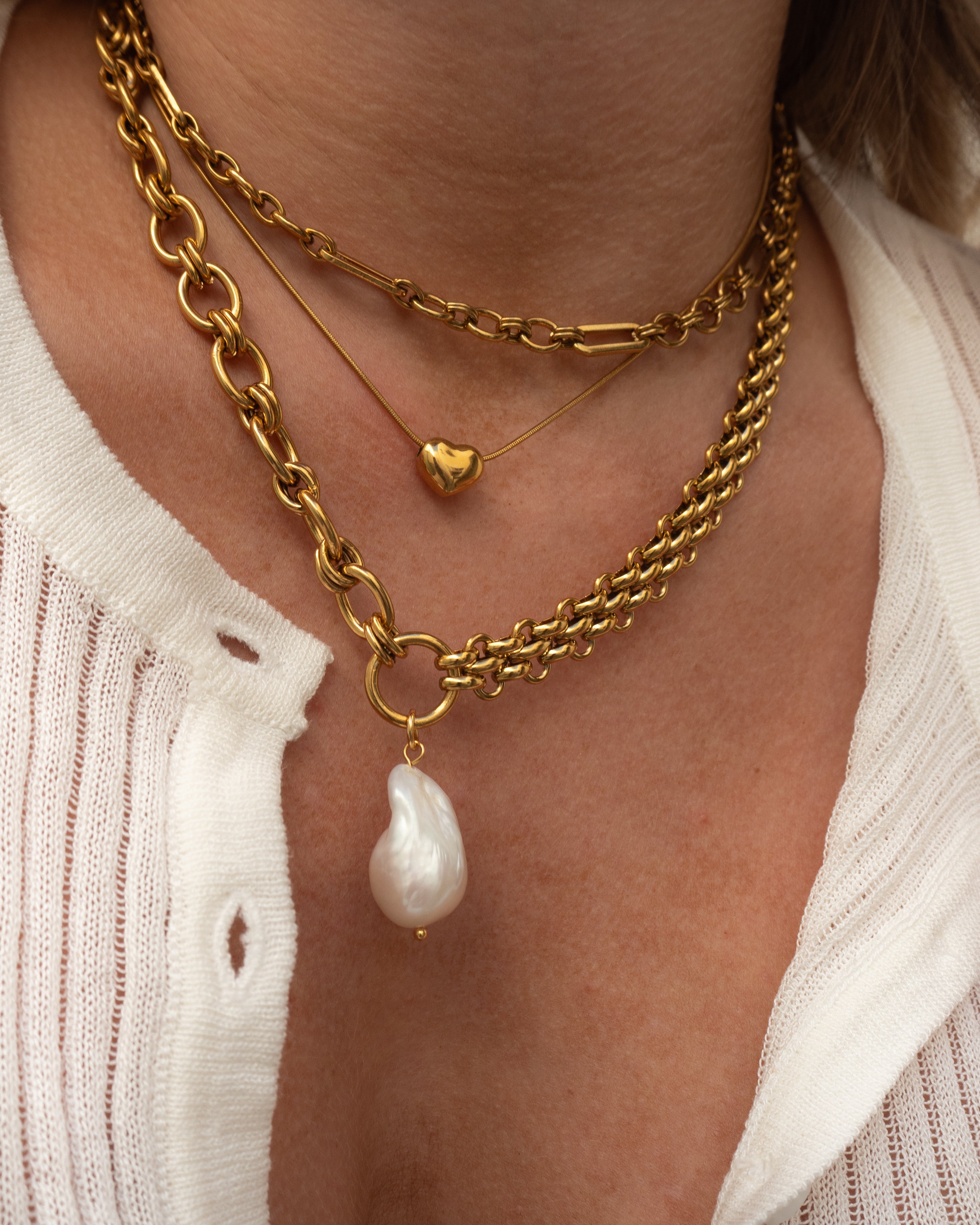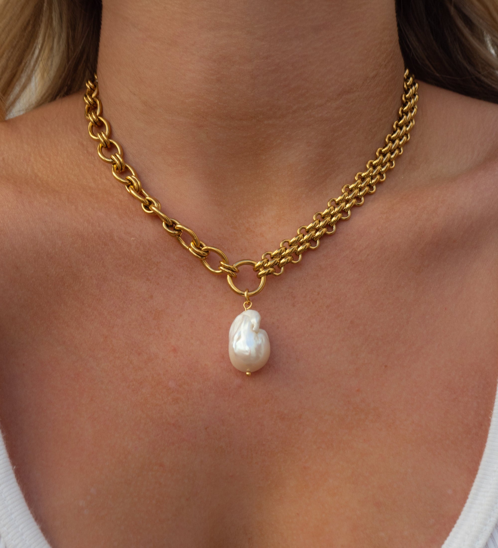 Chunky Gold Chain Freshwater Baroque Pearl Necklace
