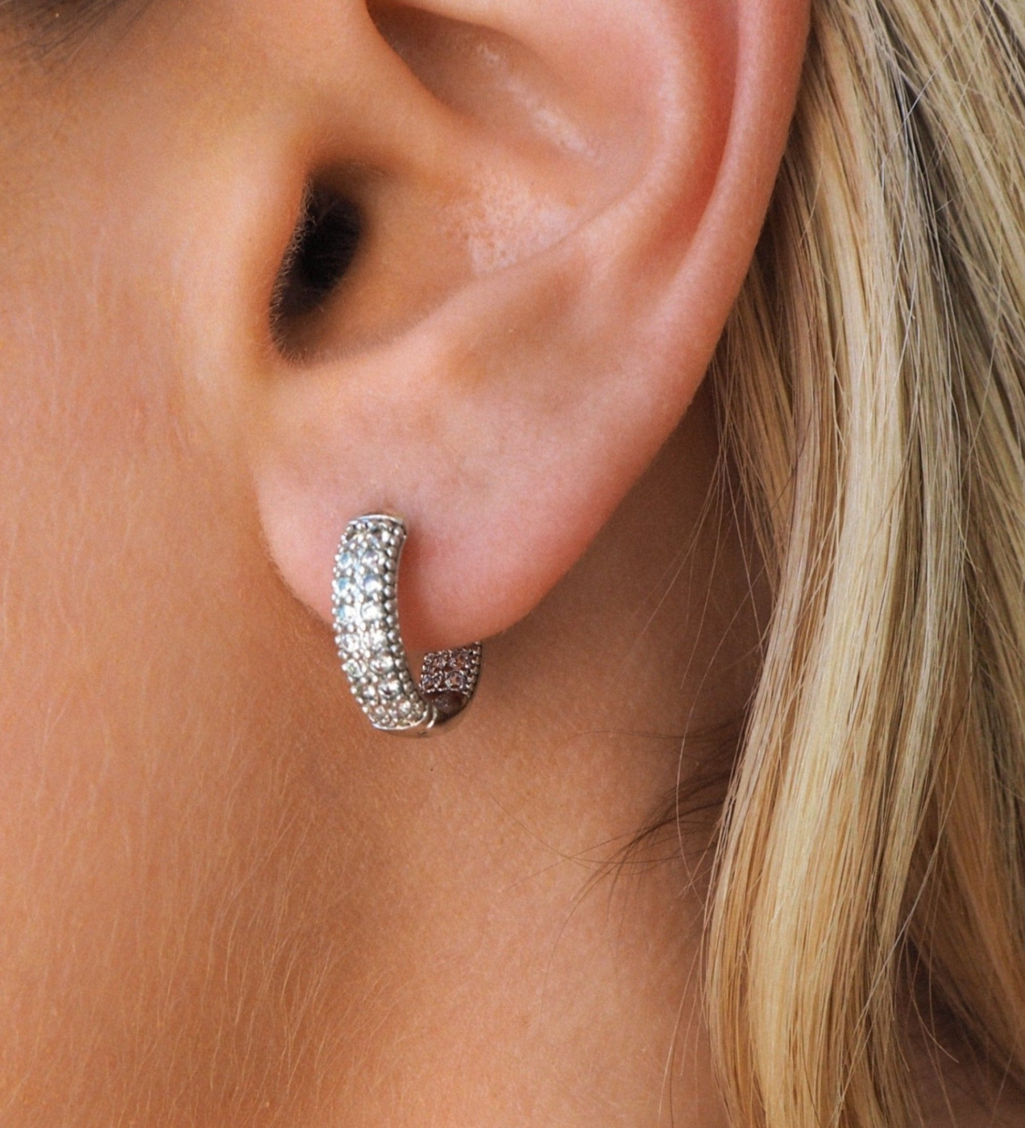 Pave Crystal Silver Rhodium Plated Baby Huggie Hoop Earrings