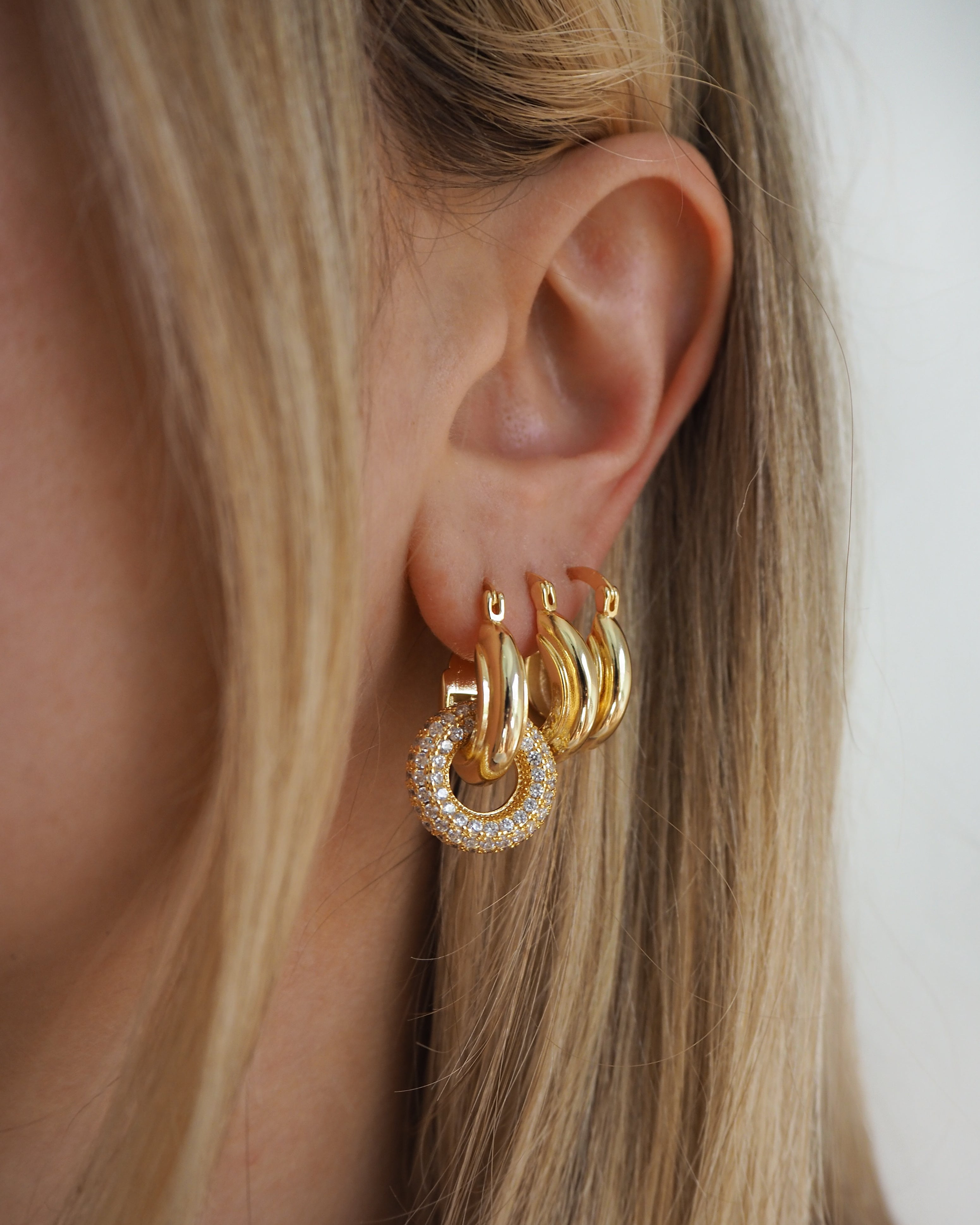 *You can remove the second pave hoops and wear the plain gold hoops*