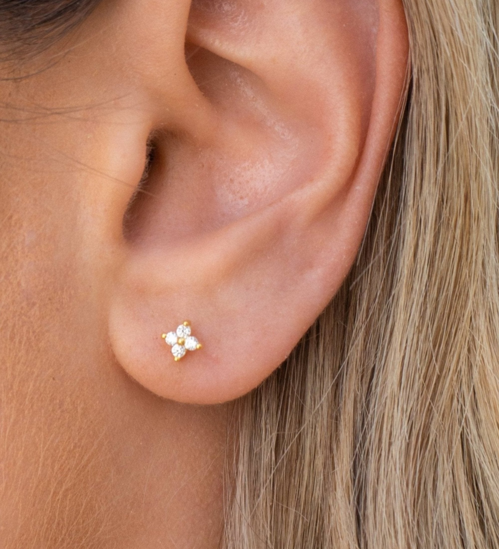 Gold Plated Sterling Silver Crystal Stud Earrings