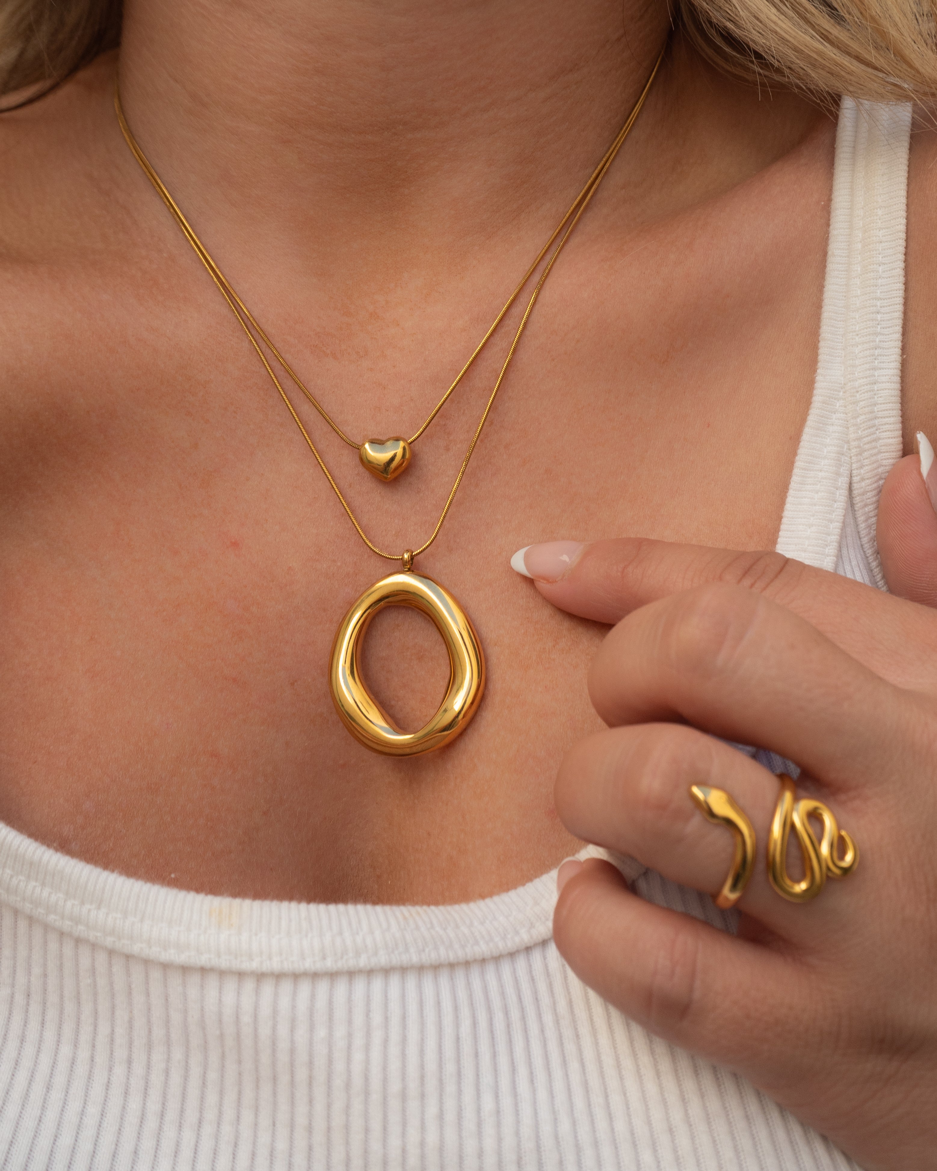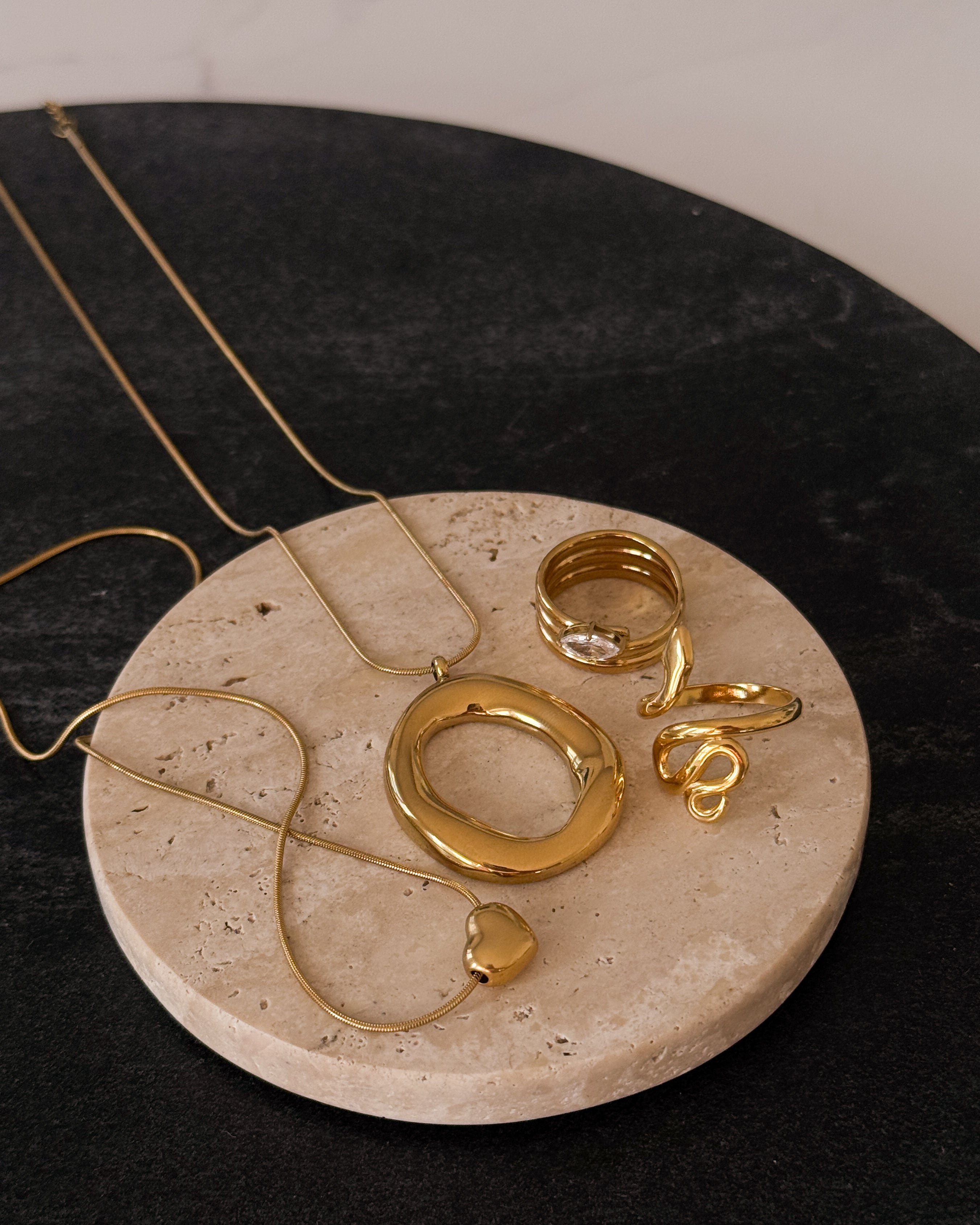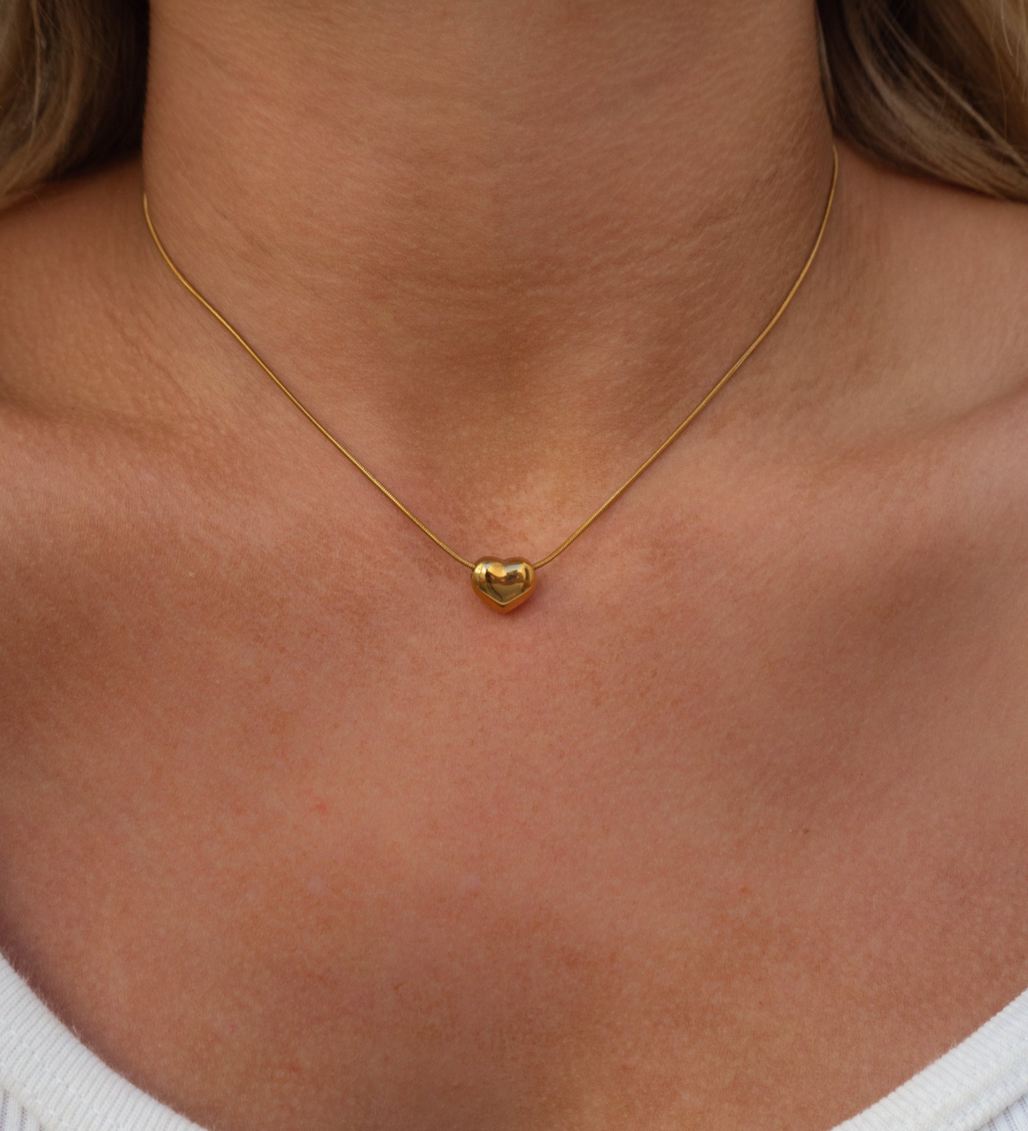 Gold Snake Chain Necklace with Mini Bubble Heart Pendant