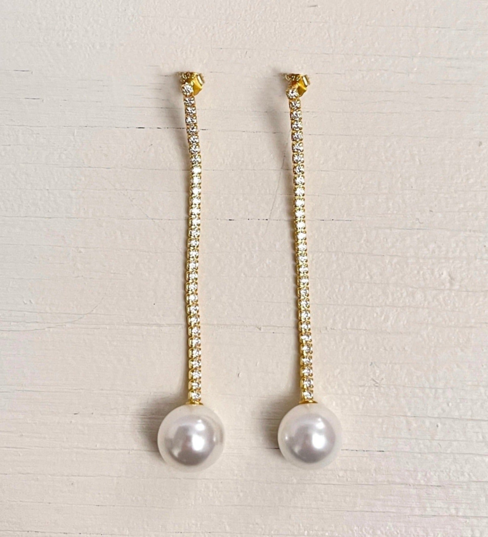 Vermeil Pave Crystal Earrings with Pearlized Drop