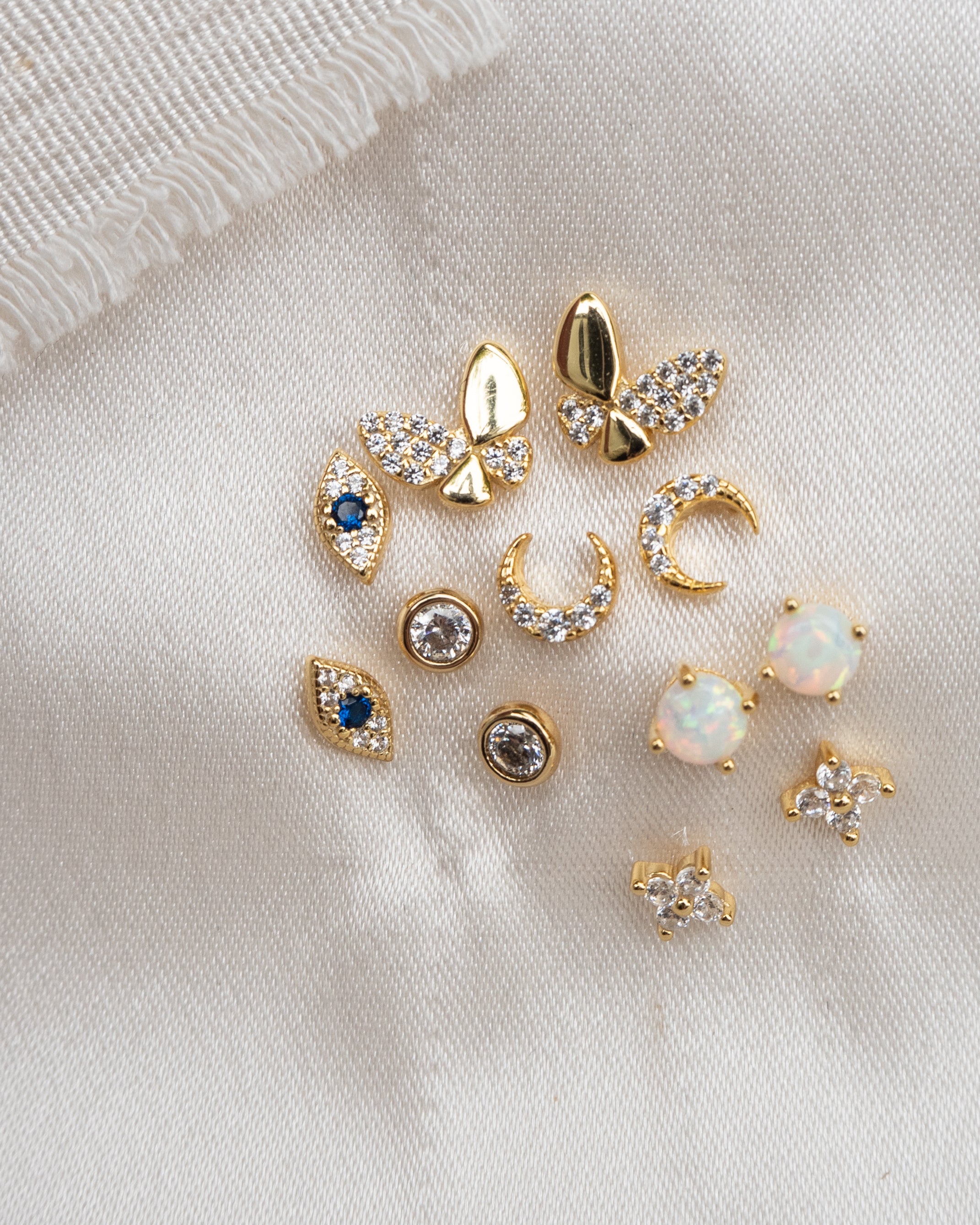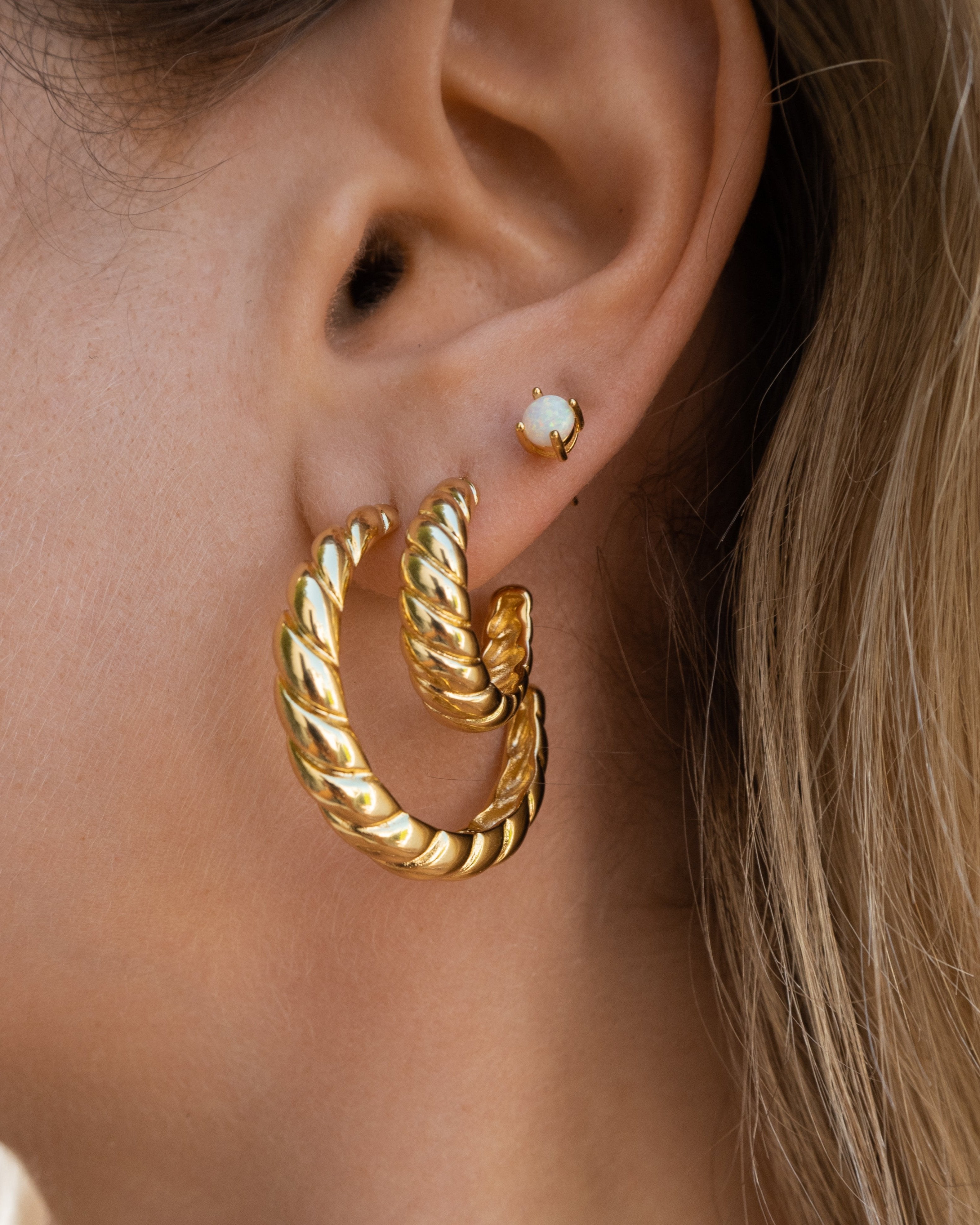 - Vermeil Stud Earrings with White Opal Gemstone