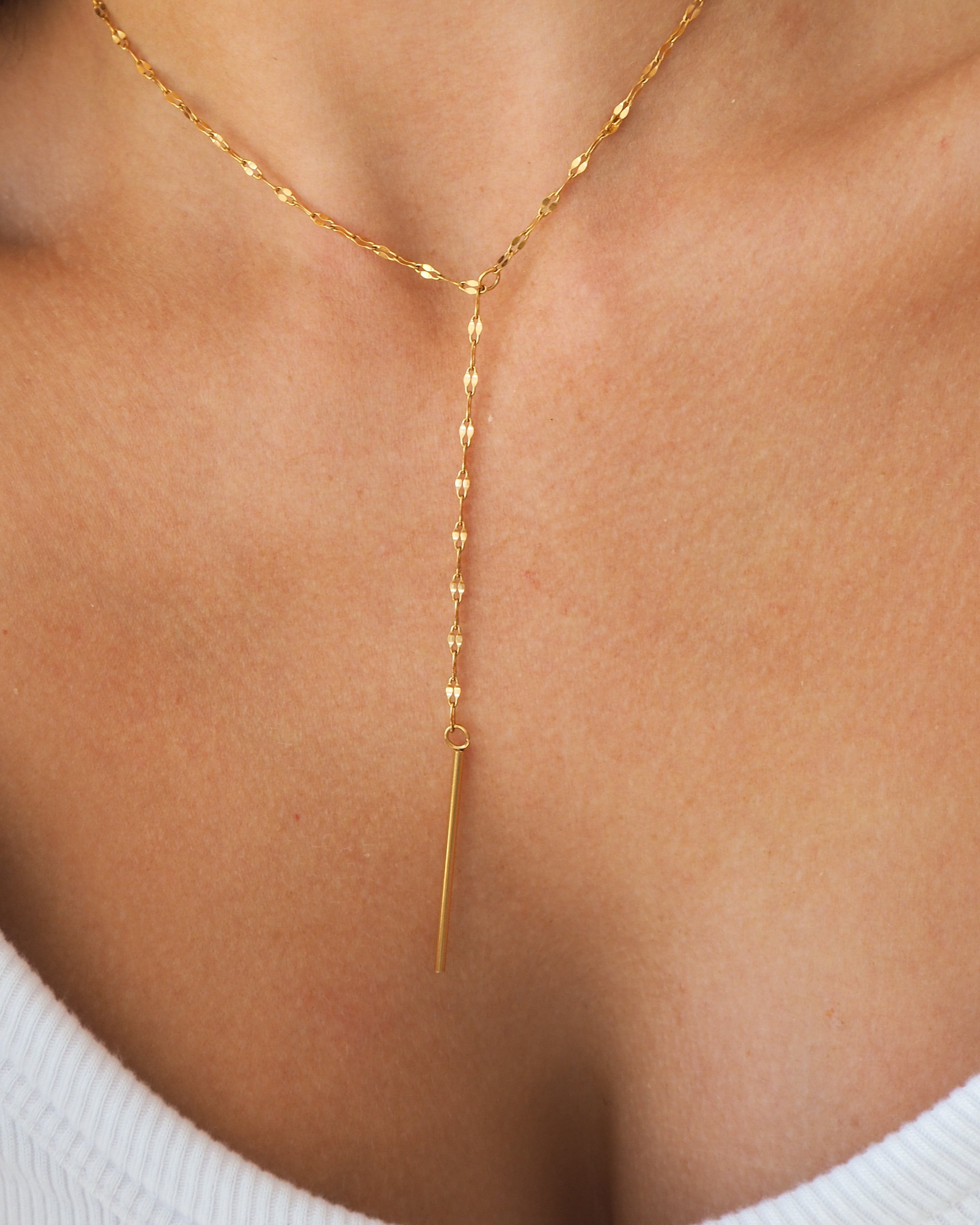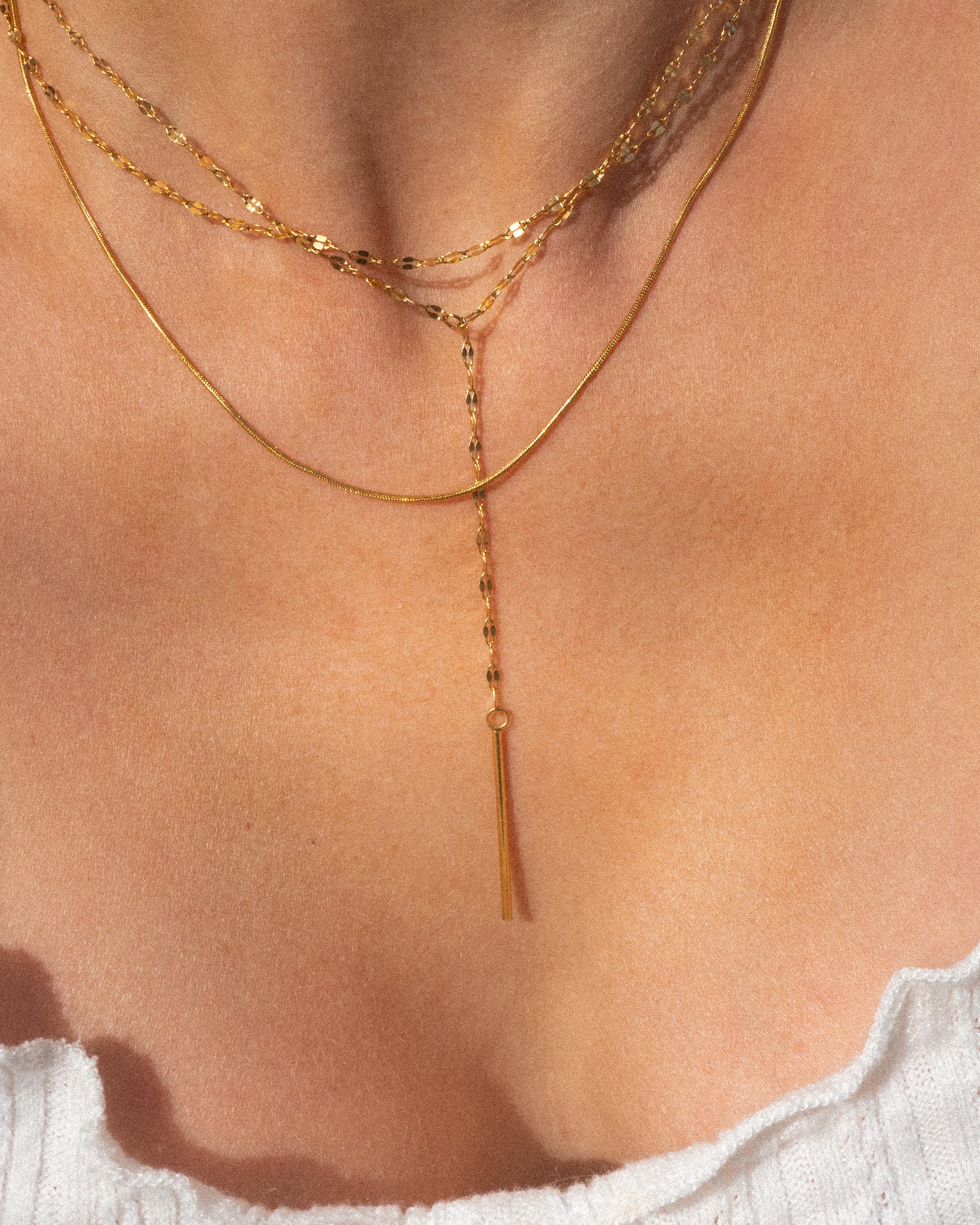 Gold Plated Stainless Steel Shimmer Y Chain Necklace