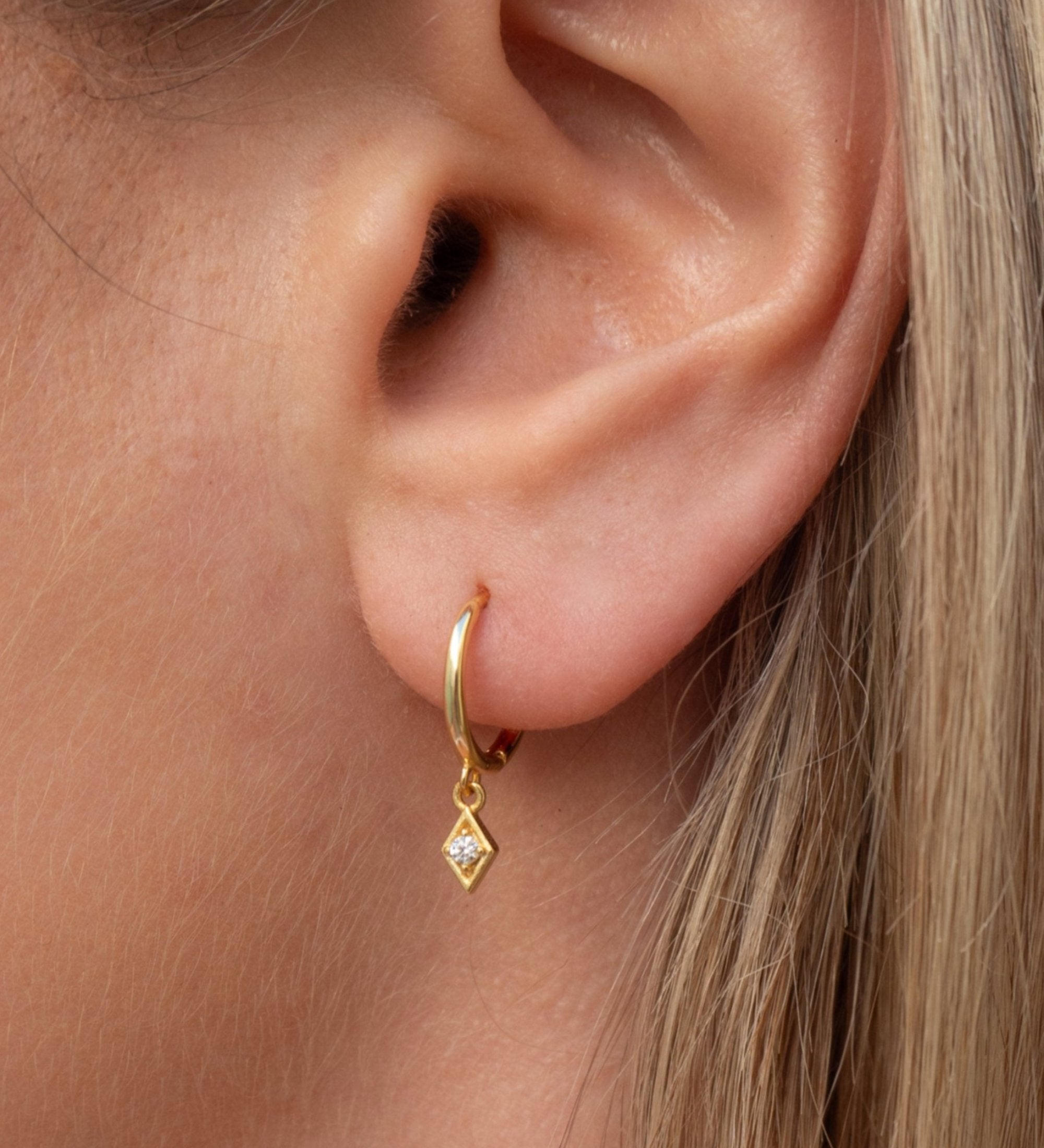 Gold Plated Sterling Silver Diamond Crystal Huggies